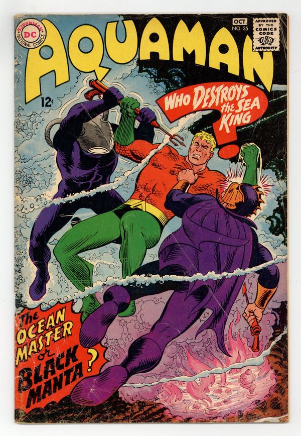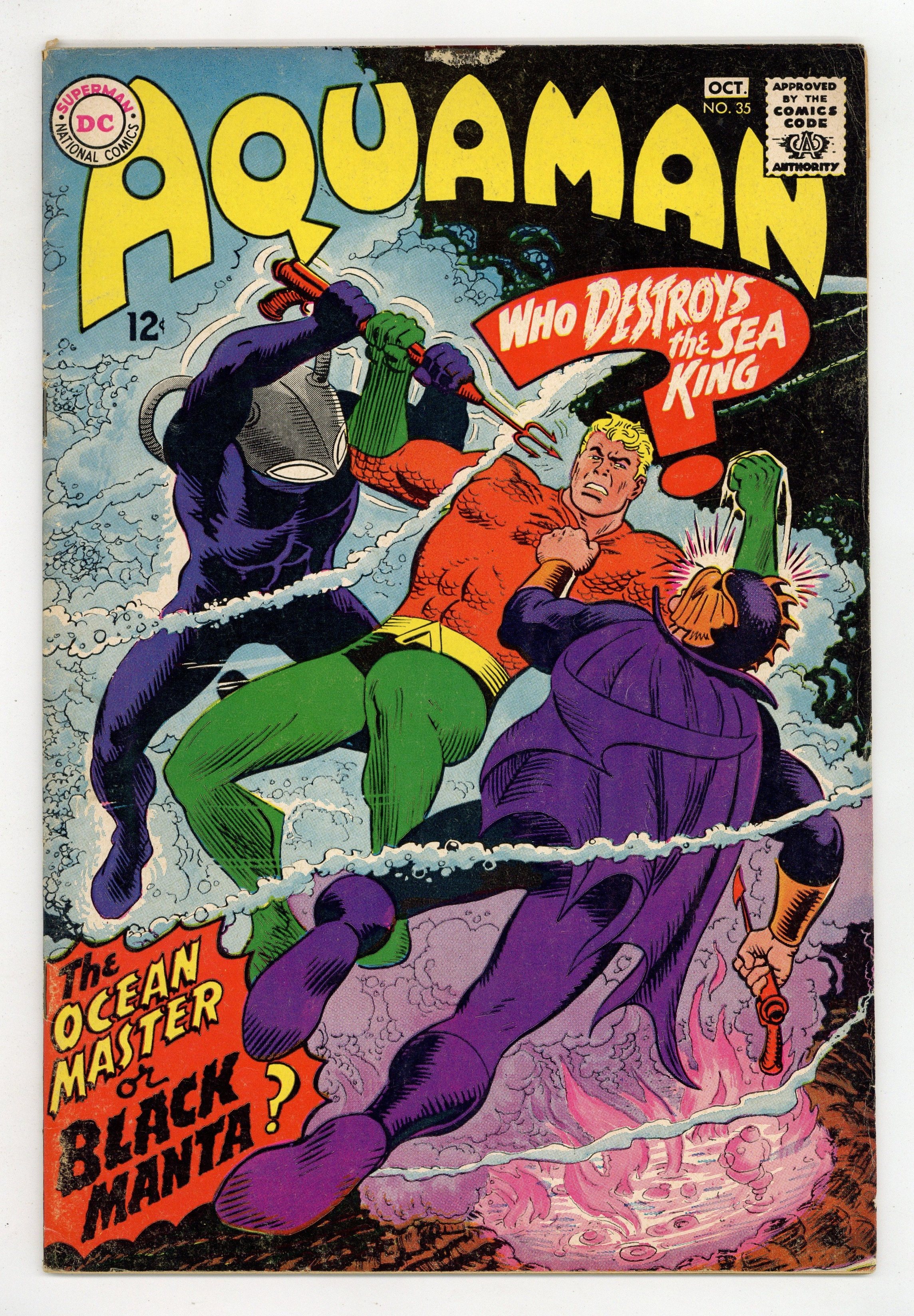 Cover art by Nick Cardy. Between Two Dooms!, script by Bob Haney, art by Nick Cardy; Black Manta attacks Atlantis. When he captures Aquaman, Ocean Master decides that nobody but him should defeat Aquaman and he attacks Black Manta, with Aquababy caught in the middle of the fight. Cap's Hobby Hints activity half-page by Henry Boltinoff. 36 pgs. $0.12. Cover price $0.12.