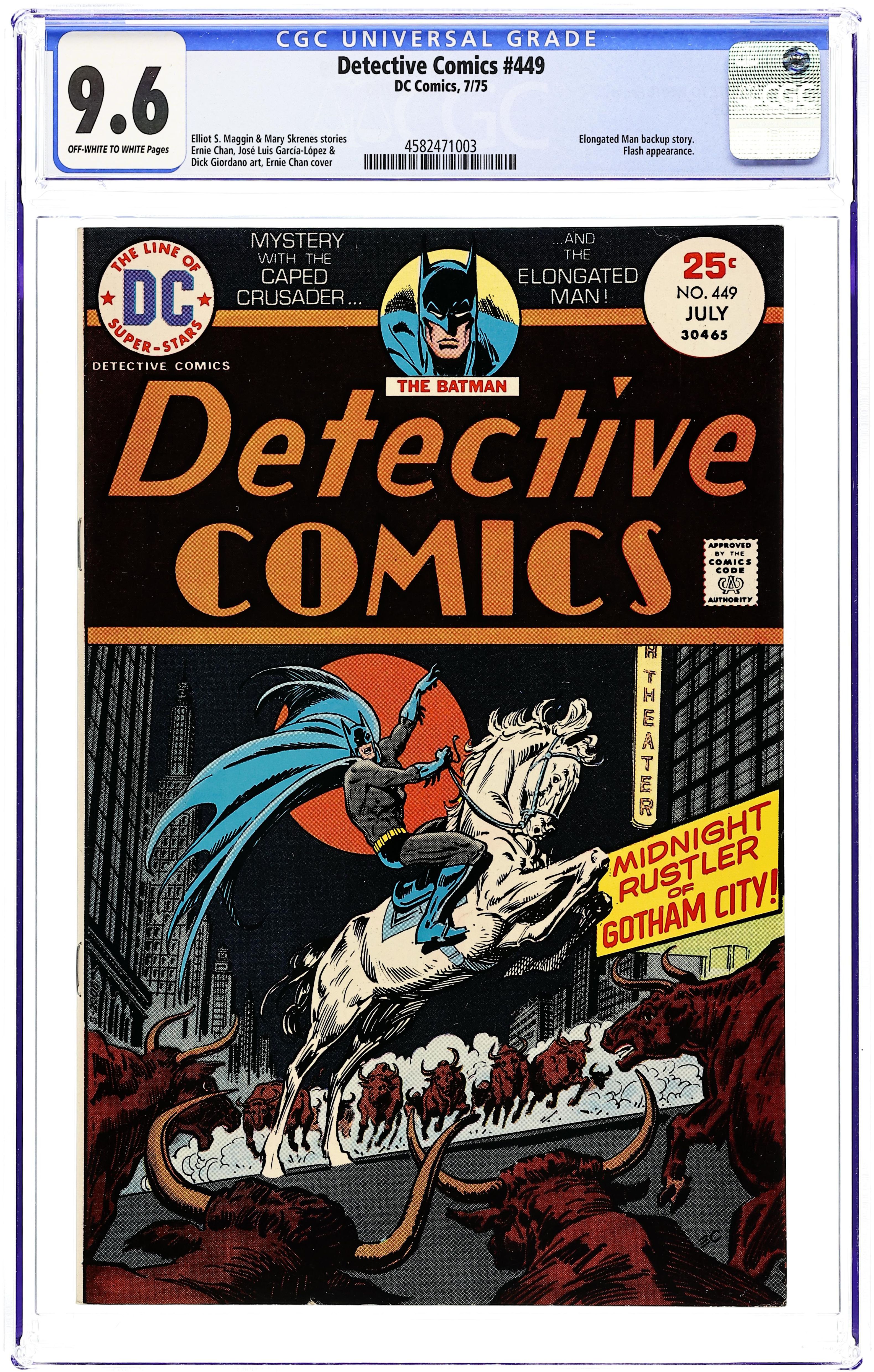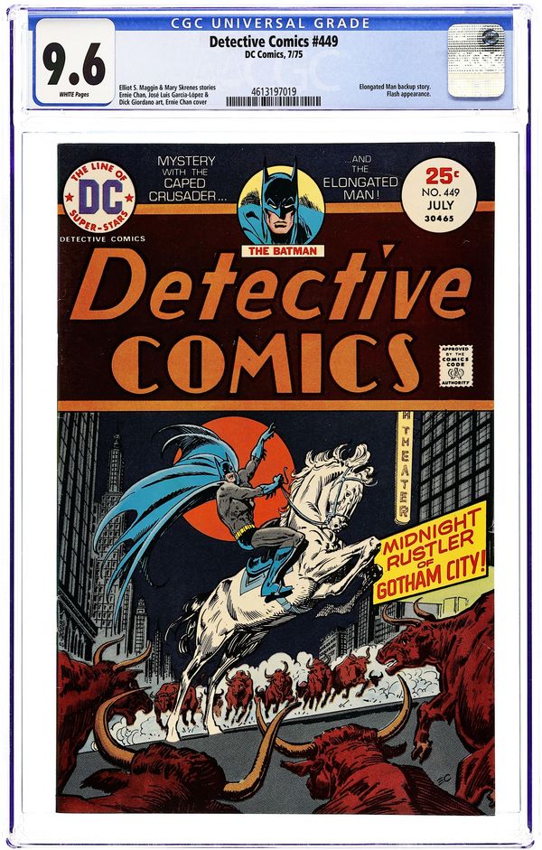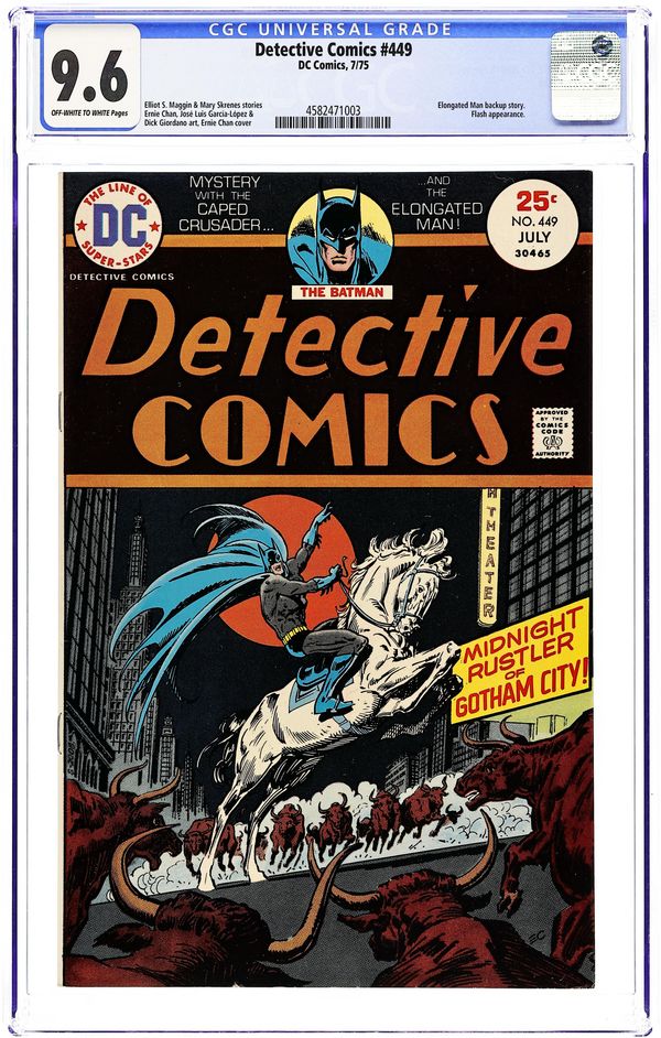 Cover by Ernie Chan. "Midnight Rustler of Gotham City!", script by Elliot S! Maggin, pencils by Ernie Chan, inks by Jose Luis Garcia-Lopez; Commissioner Gordon summons Batman to help him solve a problem involving four slaughterhouses each losing a herd of cattle; The Commissioner got an anonymous tip about a fifth attempt to occur that night involving a cattle boat; Batman spots the normally unused Refugee Island Ferry in transit and presumes it to be part of the smuggling; Batman boards the boat and is confronted by Tad Wolfe who is about to shoot Batman when his gun misfires; Batman catches him, bringing him to a police station where Tad's brother, Zach, refuses to post bail; That night Batman dreams of an encounter with a New Mexico medicine chief he met during his training to become Batman; The dream ends with a clicking noise and the imagery forming a gun; Batman poses as 'Slicker' and gathers information about Zachary Wolfe . "The Mystery Man Who Walked on Air!", script by Mary Skrenes, art by Dick Giordano; Sue and Ralph are on vacation in Florida when Sue wakes Ralph up to tell him that someone is walking outside their window; As they are on the ninth floor, Ralph dresses and chases after the old man who is carrying a birdcage; He tells Ralph he is tired of walking, grabs the bird and flies off. Letter from comics historian Peter Sanderson. Hostess Fruit Pies ad starring Superman, art by Curt Swan. 36 pgs., full color. $0.25. Cover price $0.25.