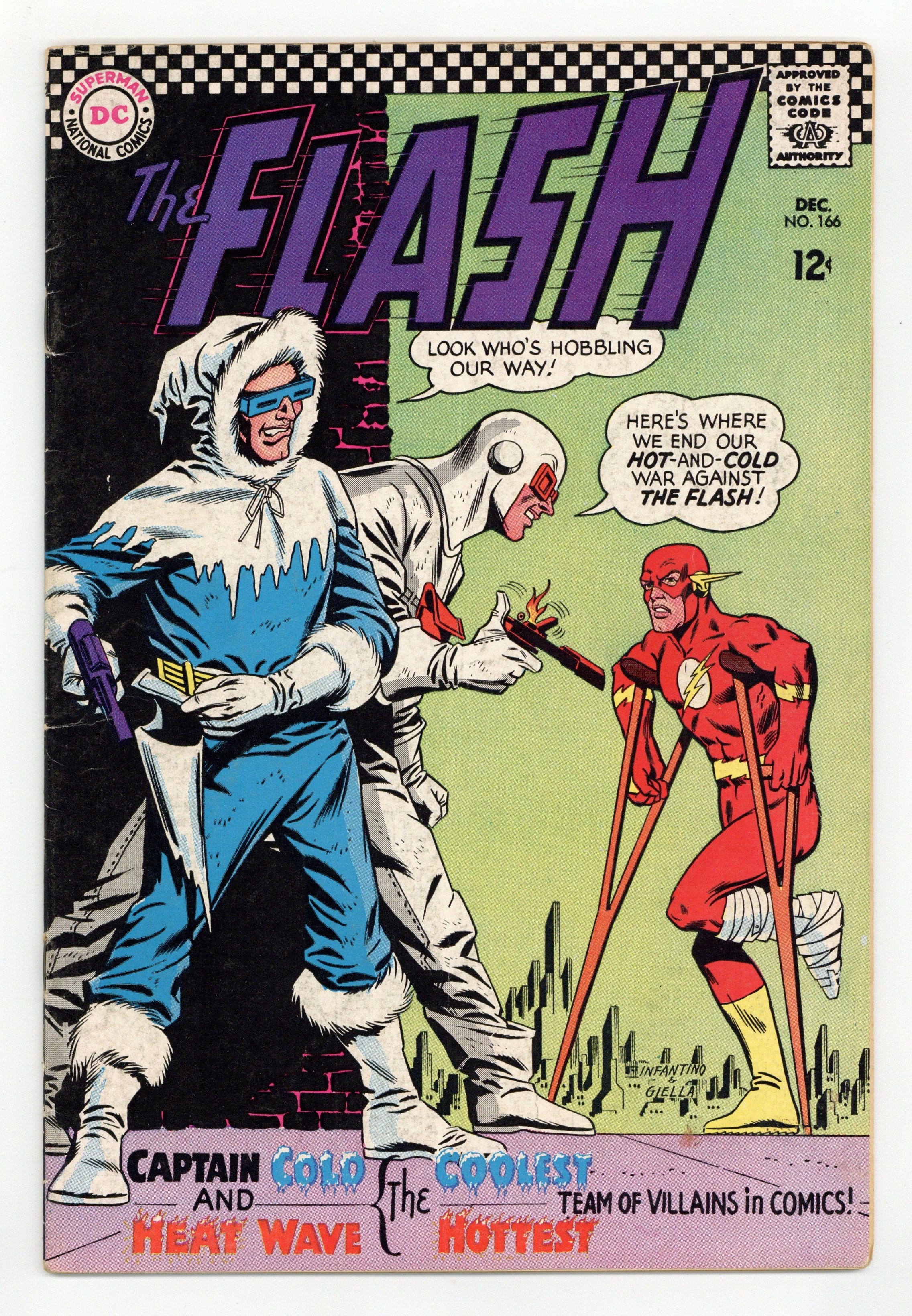 Cover pencils by Carmine Infantino, inks by Joe Giella. Last Stand of the Three-Time Losers, script by John Broome, pencils by Carmine Infantino, inks by Joe Giella; Barry battles seemingly routine crooks, but then feels compelled to tell Iris that he is secretly The Flash. Tempting Target of the Temperature Twins, script by Gardner Fox, pencils by Carmine Infantino, inks by Joe Giella; The Flash sprains his ankle rescuing people from a fire, but when he is attacked by Captain Cold and Heat Wave, the alternating effects of heat and cold fix his ankle and allow him to capture the Rougues. Letter from comics writer Marvin (Marv) Wolfman. Hawkman #17 ad. Caps Hobby Hints strip by Henry Boltinoff. 80 pg. Giant Batman ad. G.I. Joe Club ad. 36 Pages, Full Color. Cover price $0.12.