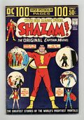 Tags: DC 100 Page Giant$33.00100-page giant; all reprints. "A Twice-Told Tale" (from Captain Marvel Adventures 80 in 1947), "The Original Captain Marvel Introduces Mary Marvel" (from CMA 18 in 1942; script by Otto Binder), "The Mighty Marvels Join Forces" (from Marvel Family 1 in 1945), "Captain Marvel Jr. and the Vest Pocket Levitator" (from Captain Marvel Junior 14 in 1943; art by Mac Raboy), "Mary Marvel and the Dog-Nappers" (from Mary Marvel 17 in 1947; art by Jack Binder), "The Original Captain Marvel and his Three Lieutenant Marvels in the Adventure in Time" (from CMA 71 in 1947), "The Talking Tiger" (from CMA 79 in 1947; script by Binder, art by C.C. Beck), and "The Return of Mr. Tawny" (from CMA 82 in 1948). New Beck cover. Cover price $0.50.