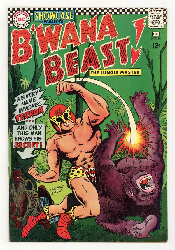 Cover pencils by Mike Sekowsky, inks by Joe Giella. (Part 1) The Birth of B'wana Beast, pencils by Mike Sekowsky, inks by George Roussos; Origin of B'wana Beast; In Africa, Game Rangers Mike Maxwell (Caucasian) and Rupert Zambesi Kenboya (Negro) crashed on Mount Kilimanjaro; Kenboya gives Maxwell a mineral-laced drink and a talking red ape gives him a strange helmet; He gained animal strength, can control animals, and even blend them magically into giant hybrids like a rhino-buffalo. Captain Action ad. Ad for Detective Comics #359, the debut of Batgirl. Ad for the 80-Page Giant Superman #193. Cap's Hobby Hints by Henry Boltinoff. Ad for Plastic Man #2, vs. The Spider. Ad for Batman #189. Part 2 The Birth of B'wana Beast, pencils by Mike Sekowsky, inks by George Roussos; origin story continues. Ad for Strange Adventures #196 and Tales of the Unexpected #99. B'Wana Beast's Real Africa; article about the modern Africa. Champs Against Odds! public service announcement, pencils by Jack Schiff, inks by Sheldon Moldoff; featuring Mickey Mantle, Wilma Rudolph, and Ben Hogan. Part 3 The Birth of B'wana Beast, pencils by Mike Sekowsky, inks by George Roussos; origin story continues, then continues to next issue. Ad for Challengers of the Unknown #54 and Doom Patrol #109. Ad for GI Joe figures and accesories. Captain Billy & the Kid! Renwal Model Planes ad. 36 Pages, Full Color. Cover price $0.12.