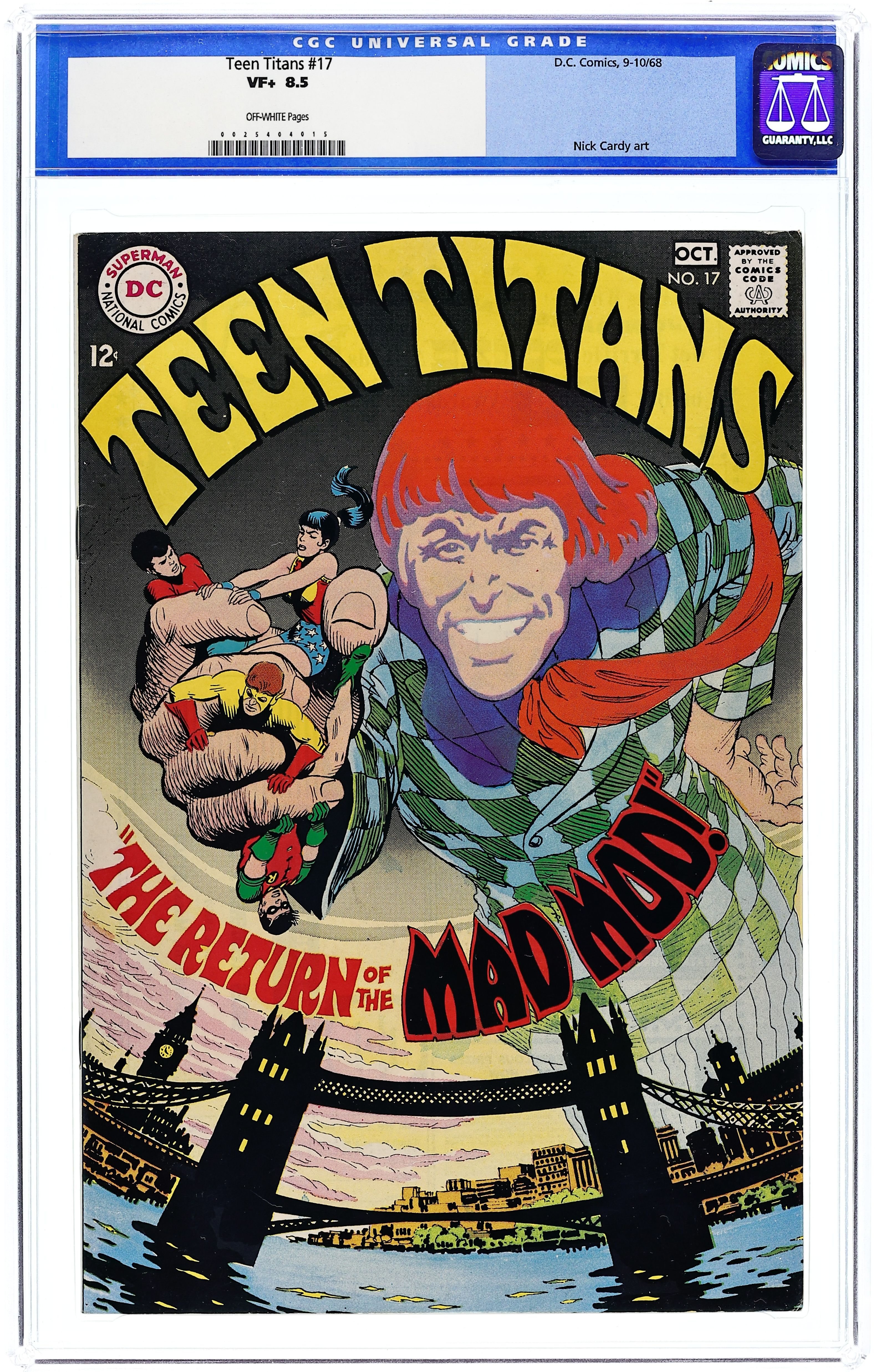 Written by Bob Haney. Art and cover by Nick Cardy. The Titans recover Queen Elizabeth's stolen scepter. 36 Pages, Full Color. Cover price $0.12.