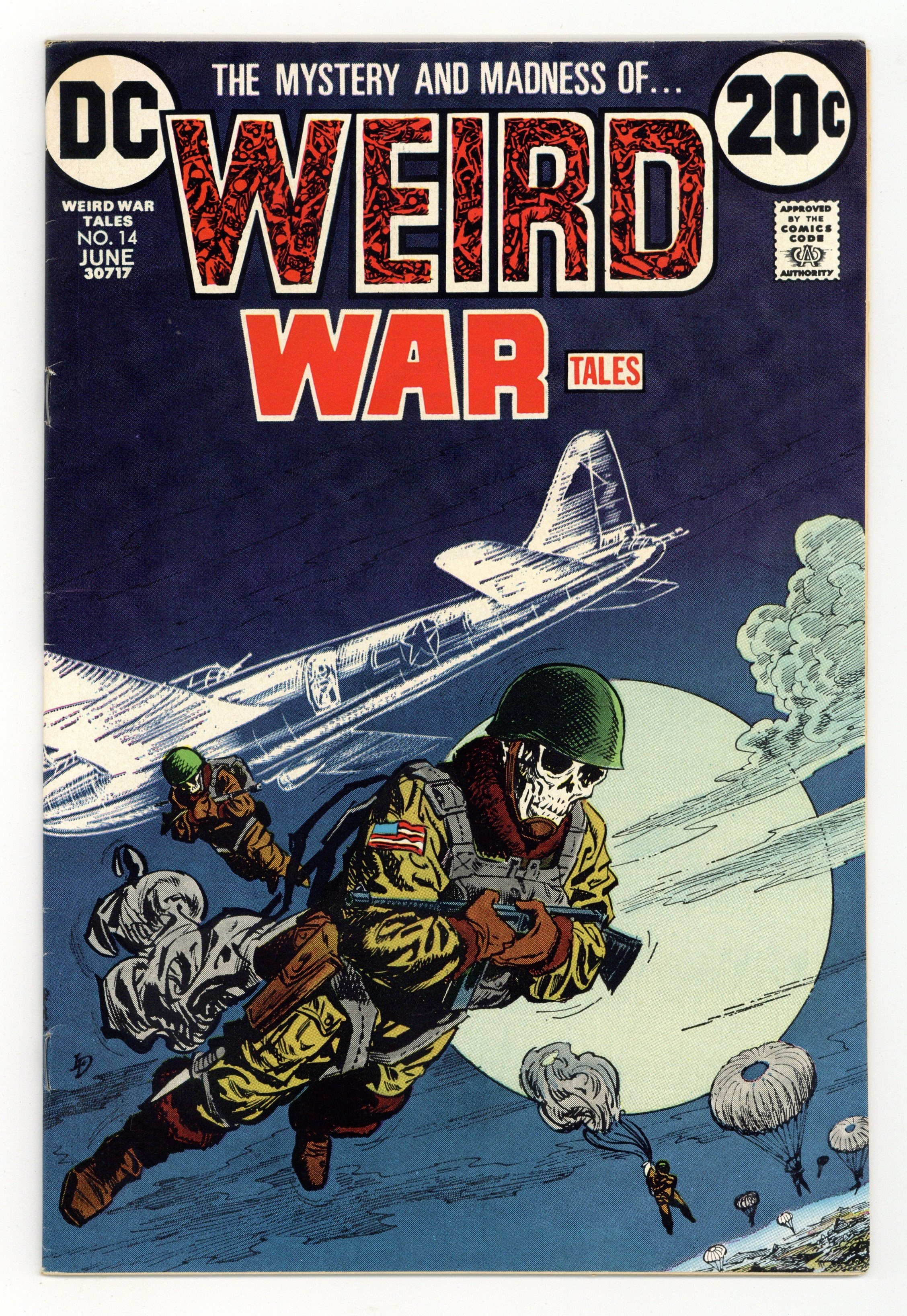 $45.00Cover art by Luis Dominguez. Dream of Disaster, script by Sheldon Mayer, pencils by Tony DeZuniga, inks by Alfredo Alcala; Chapter 1--Set in December 1941 in Oahu, Hawaii during World War II. A Phantom for a Co-Pilot, script by Sheldon Mayer, pencils by Tony DeZuniga, inks by Alfredo Alcala; Chapter 2--Set on 11 December 1941 in the Pacific Ocean during World War II. Too Late for the Death March, script by Sheldon Mayer, pencils by Tony DeZuniga, inks by Alfredo Alcala; Chapter 3--Set on 6 May 1942 on Corregidor Island, Philippines during World War II. The Ghost of McBride's Woman, script by Sheldon Mayer, pencils by Tony DeZuniga, inks by Alfredo Alcala; chapter 4--Set on 2 February 1945 in Luzon, Philippines during World War II. 36 pgs. $0.20. Cover price $0.20.