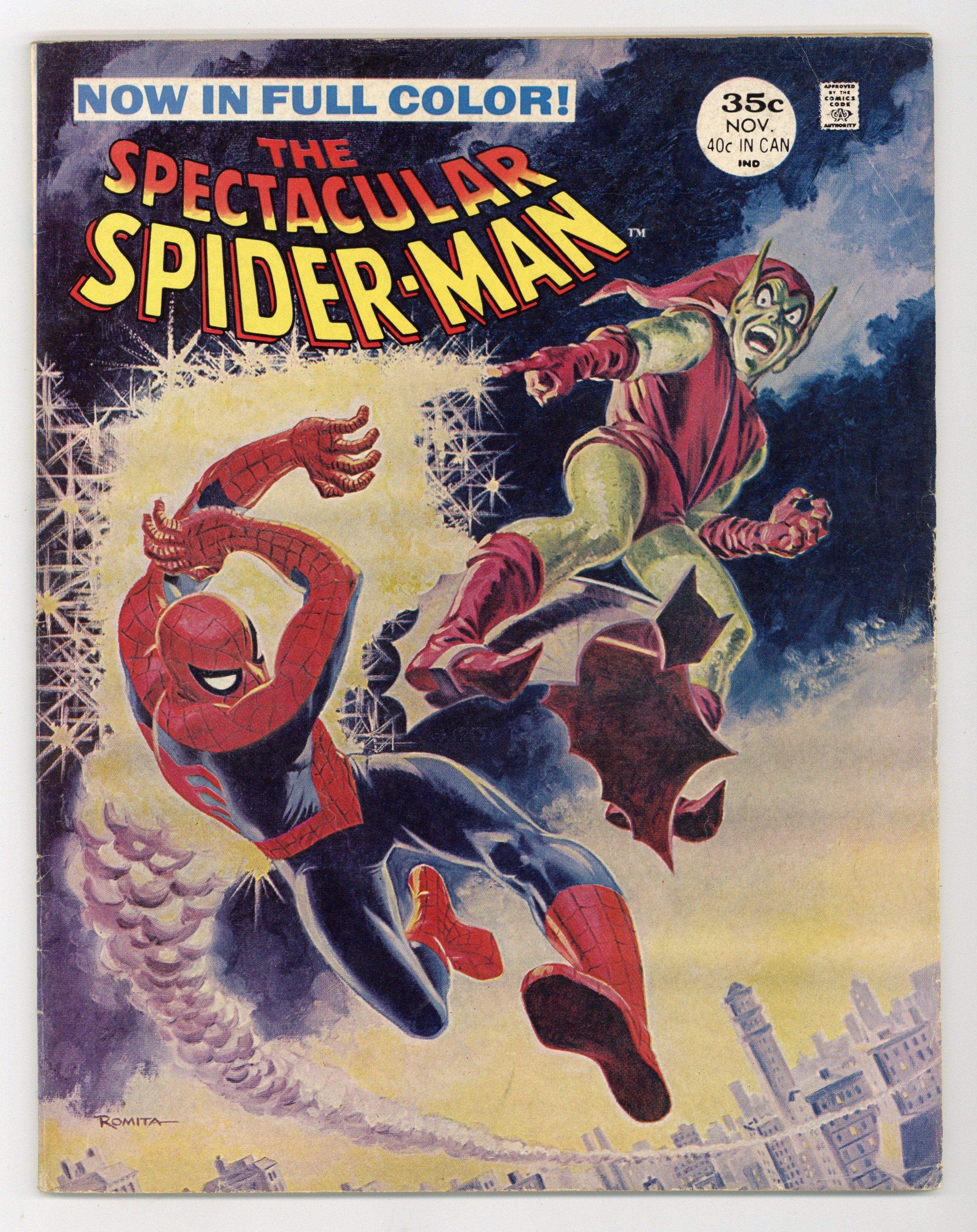 Vol. 1, No. 2. November 1968. Spider-Man battles the Green Goblin in "The Goblin Lives!" Script by Stan Lee, pencils by John Romita Sr., inks by Jim Mooney. Peter Parker has learned the identity of the Goblin--none other than Norman Osborn--and is pushed to his limit when green one threatens Aunt May! 58 pages of non-stop action! 8-in. x 10.25-in.; color; 64 pages. Romita cover painting. Cover price $0.35.