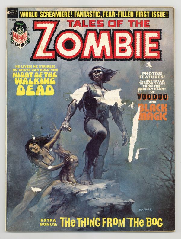 Simon Garth dies but is brought back to life as a zombie and doomed to walk the earth as one of the living dead. In a three part story, "Alter of the Damned" (Script by Steve Gerber and Roy Thomas and art by John Buscema and Tom Palmer), "Zombie" (Script by Stan Lee and art by Bill Everett) and "Night of the Walking Dead" ) Script by Steve Gerber and art by John Buscema and Syd Shores) a former employee's revenge seals Garth's fate into becoming a zombie but he still fights to protect his daughter. Issue also has "Iron Head (Script by Stan Lee, art by Dick Ayers), an article about the zombie in the movies, "The Thing from the Bog" (script by Kit Pearson and Marv Wolfman and art by Pablos Marcos), and "Mastermind" (script and art by Tom Sutton). All stories are in black and white. Cover price $0.75.