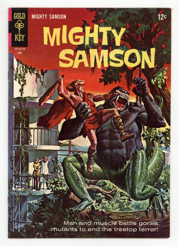 Painted cover. Mighty Samson in "Terror In Tallplace Town!" and "King for a Day" in which Mighty Samson faces the return of Kull the Killer and his tribe. Backup feature Tom Morrow in "Mental 'Treasure' Hunt." Issue also has one-page "Mighty Samson" features throughout book, Gold Key Comics Club News features, and one-page text feature "Lost Civilizations: Ancient Tikal." No art/story credits given. Statement of Ownership, Management, and Circulation on last page states that comic sold an average of 254,725 copies each month. Cover price $0.12.