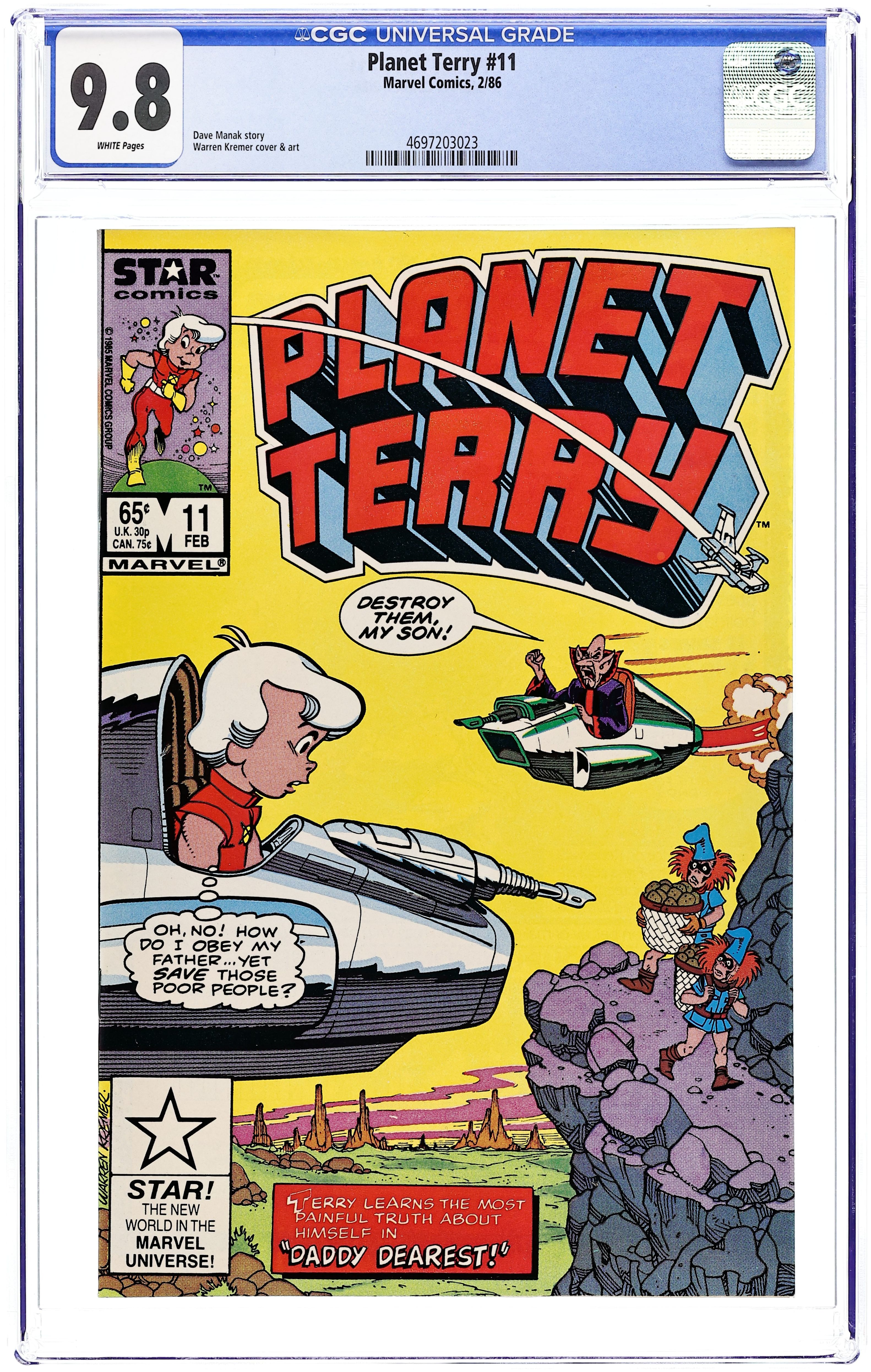 Is Vermin the Vile actually Planet Terry's father? Vermin offers some pretty good proof that he is and then takes Terry back to the Vile home and starts teaching Terry about doing things in the Vile way. But Terry has his own way of doing things. Meanwhile, Robota, Omnus and Princess Ugly search for more proof and evidence to make sure that Vermin told the truth in a three-part story, "Daddy Dearest," "Home?...At Last?" and "Under Vermin's Power." Script by Dave Manak and art by Warren Kremer & Jacqueline Roettcher & Jon D'Agostino. Cover price $0.65.