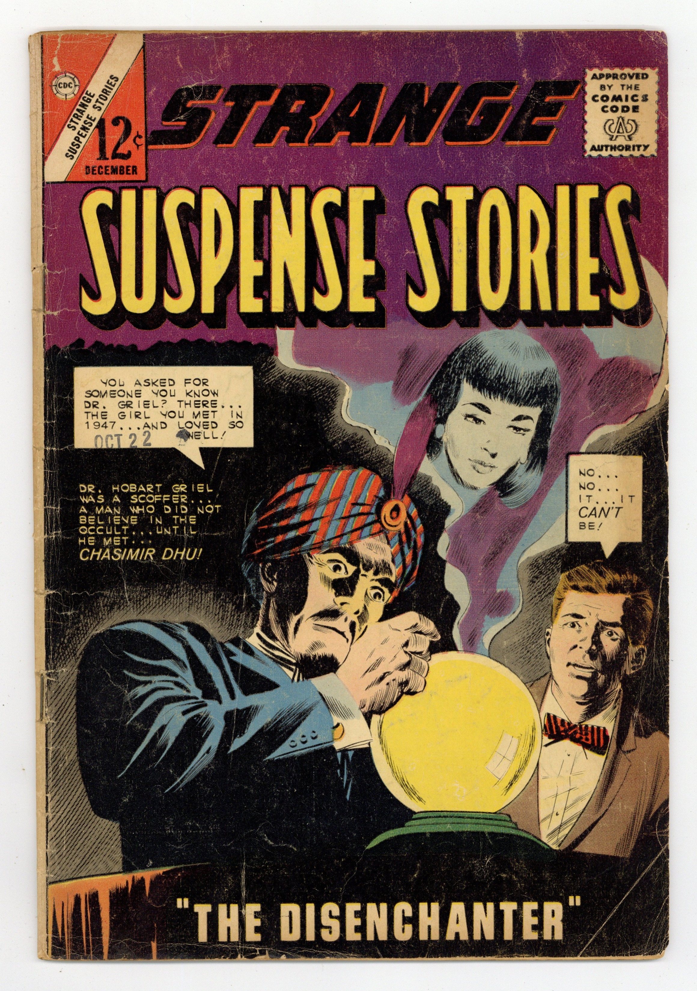 Published Dec 1963 by Fawcett/Charlton.$13.00Cover by Dick Giordano. Stories and art by Rocco "Rocke" Mastroserio and Bill Molno. Short tales of science fiction, fantasy and horror with twist endings. A scientist whose hobby is debunking phony mediums meets one who might be the real thing. Aliens demands Earth's surrender on national TV, but they might be taken more seriously if they weren't on the dead channels late at night (and their two heads weren't constantly arguing with each other). A fun "True Facts" comic about monsters, which covers everything from creatures of mythology to modern-day movie monsters like Frankenstein and Konga. The Disenchanter; The Too Late, Late Show!; From Beyond; The Exotic Beauty; Monsters Forever; The Protector. 32 pages, Full Color. Cover price $0.12.