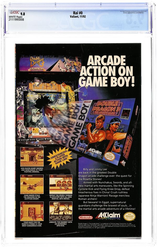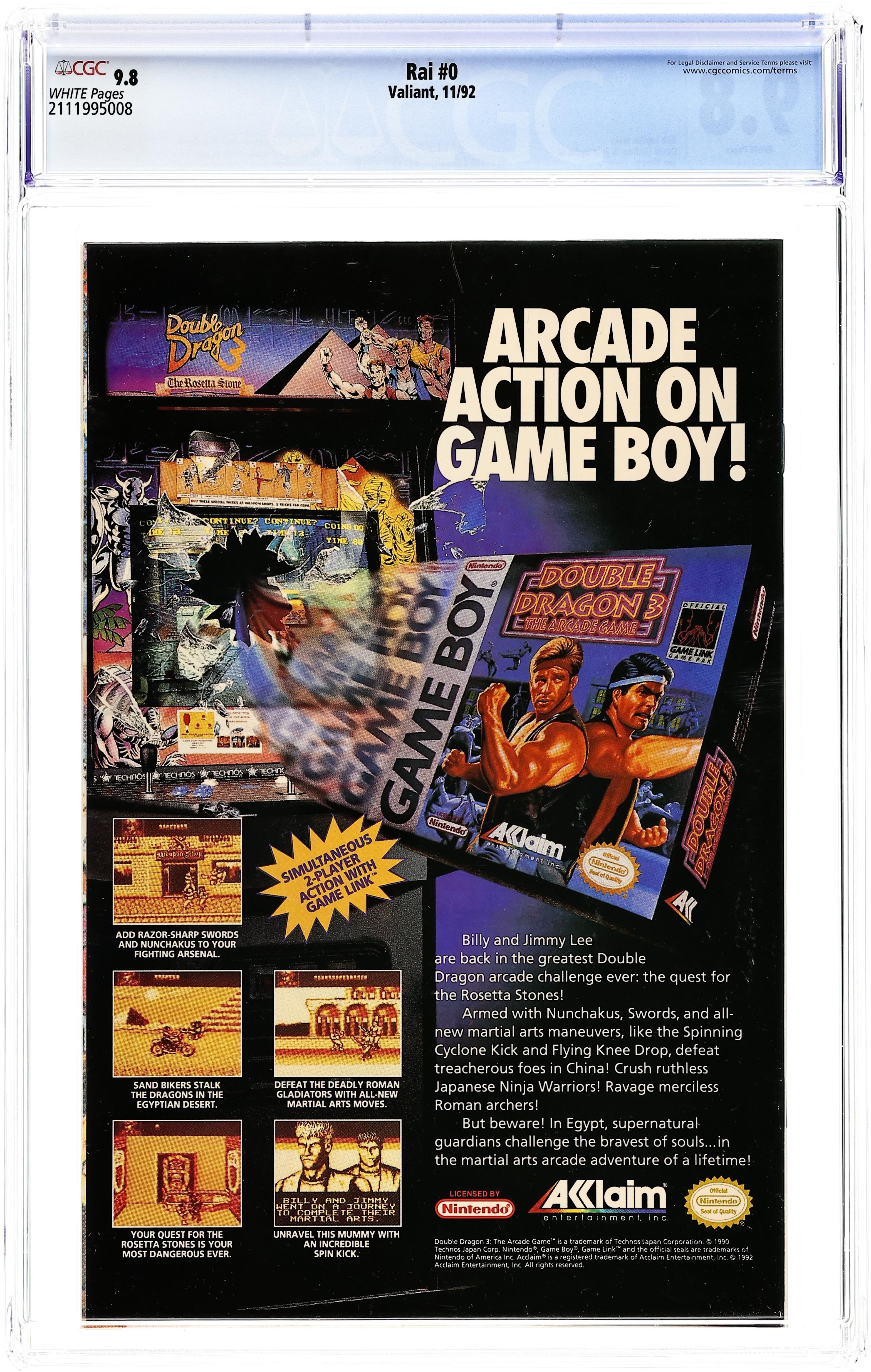 Origin and 1st full app of new Rai (Rising Spirit). Partial Origin and 1st full app of Bloodshot (1st cameo appearance occurred in Eternal Warrior #4). This issue does not have a card (coupon). In a tale that spans over 2000 years, a Geomancer tells the story of the blood of heroes and how it changed the course of history in "The Blood of Heroes." Plot by Jim Shooter, David Lapham, Bob Layton & Jon Hartz. Script by Layton, pencils by Lapham, inks by Tom Ryder. Cover price $2.25.