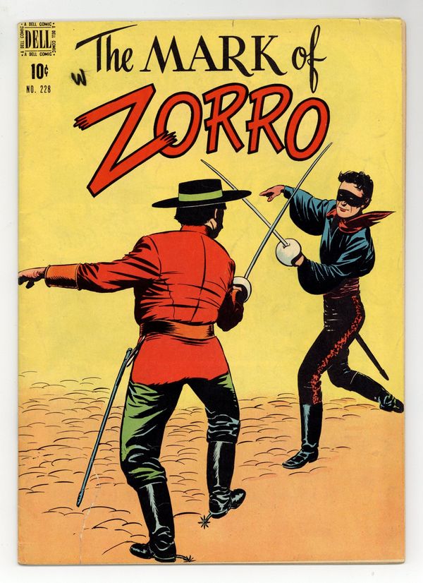 Indicia title is "THE MARK OF ZORRO, No. 228." Cover art by Bill Ely. The Mark Of Zorro, art by Bill Ely; Captain Ramon seeks the hand of the lovely Lolita Pulido; The senorita's parents wish her to marry Don Diego Vega, but she finds him dull; Don Diego, as Zorro, tries to get the senorita and her parents to help him fight the corrupt governor, but her father calls for the soldiers; Lolita is infatuated with Zorro, who has to protect her from Captain Ramon's unwanted advances; Ramon convinces the Governor to jail Lolita and her family; Zorro then organizes a party to free the Pulidos from jail. Adapted from the 1924 novel "The Mark of Zorro" by Johnston McCulley. 36 pages, full color. Cover price $0.10.
