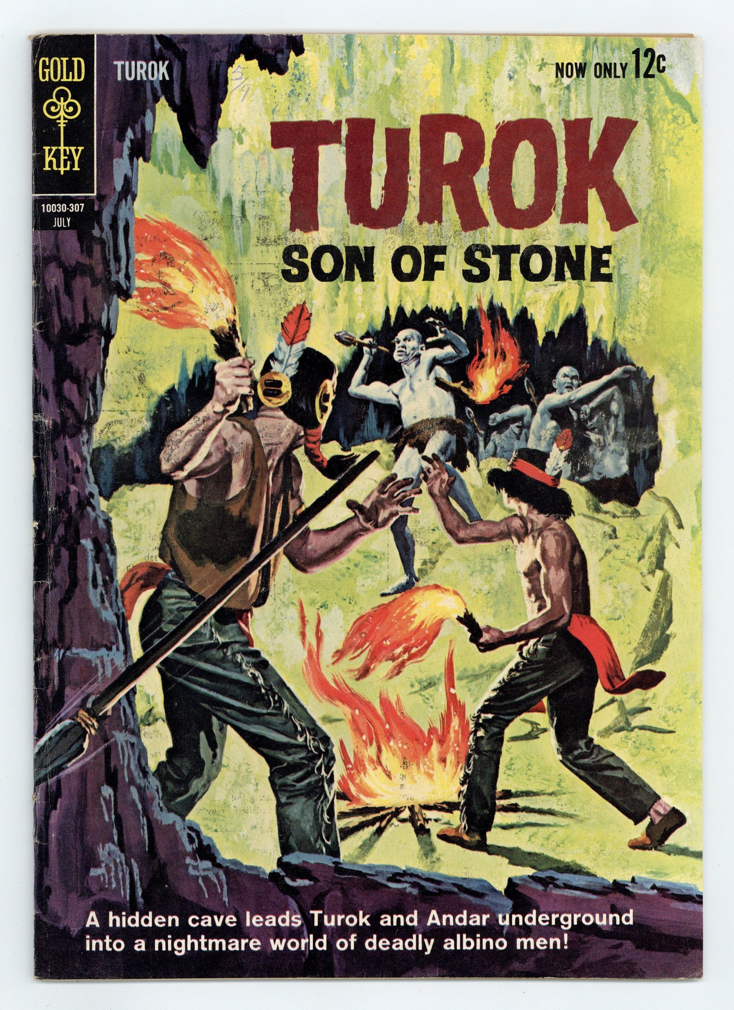 Published Jul 1963 by Dell/Gold Key.$23.00Painted cover. Turok in "The Ghostly Terror" in which Turok and Andar face nocturnal mysteries and danger and "Andar's Perilous Pet" in which Turok and Andar face all sorts of problems and danger when Andar adopts a turtle as a pet. Issue also has a one-page text feature "Early Weapons: The Stick." No art/story credits given. 36 pages, full color. Cover price $0.12.