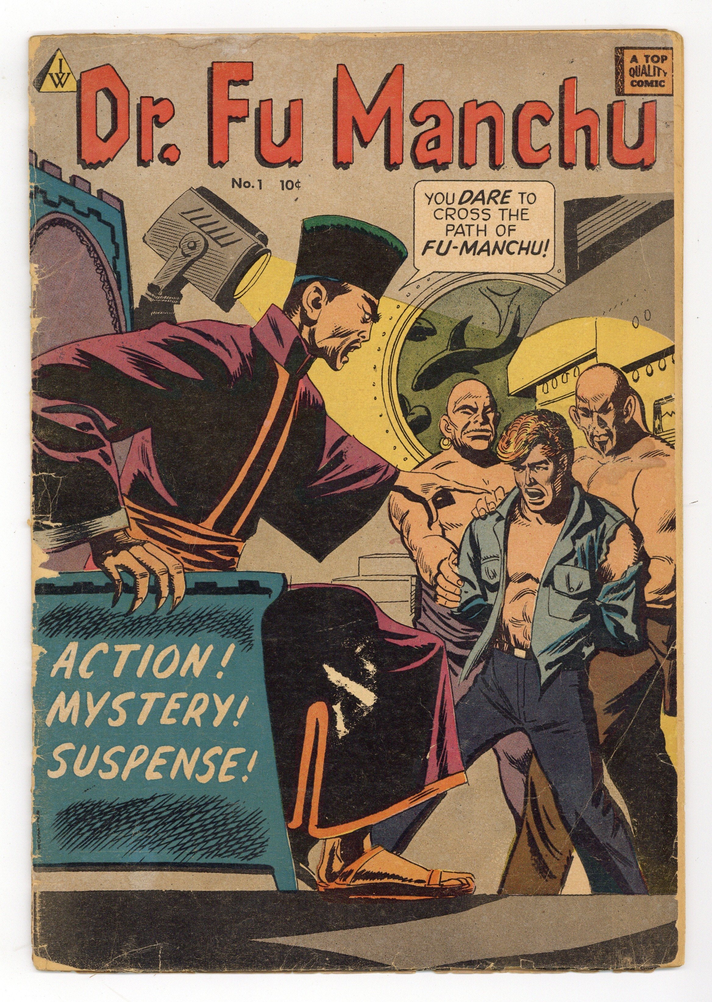 I.W. Reprint -reprints Avon's "Mask of Dr Fu Manchu". Cover art by Carl Burgos. "Dr. Fu Manchu," pencils by Wally Wood and Joe Orlando, inks by Wally Wood; Sir Denis Nayland Smith tried to defeat Dr. Fu Manchu. "Operation Blackout," art by Alvin C. Hollingsworth; Flash Harper, newspaper photographer, captures an arsonist in action in a photo. 36 pgs., full color. Cover price $0.10.