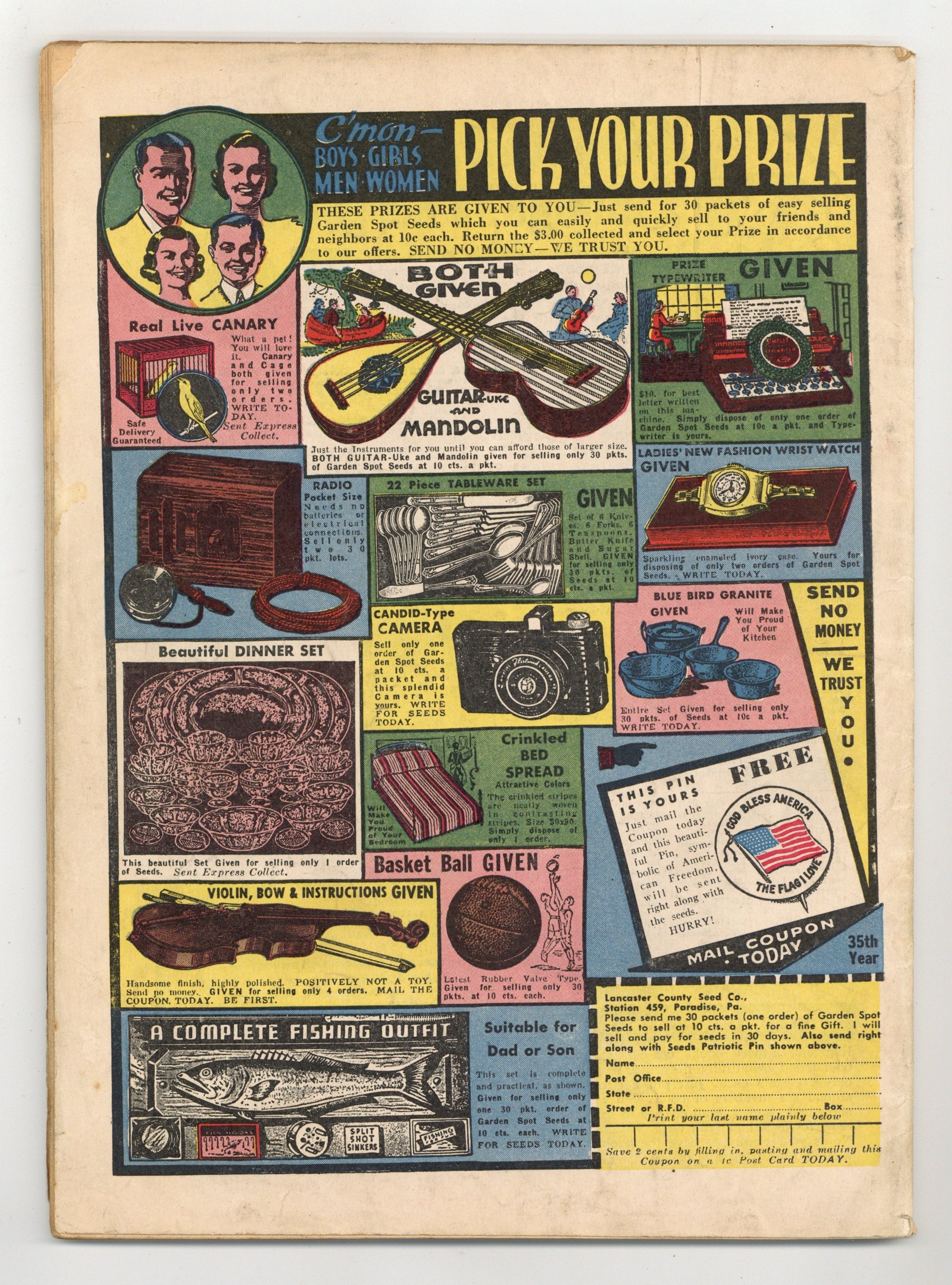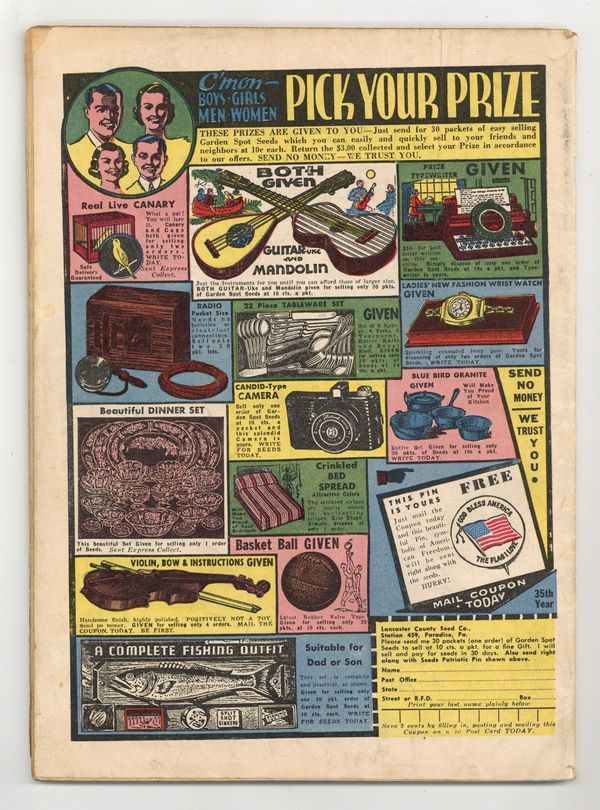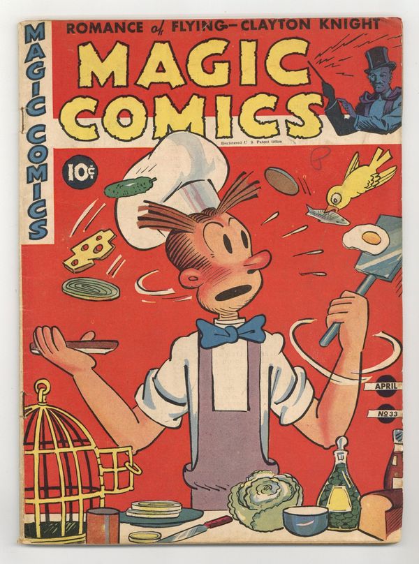 Edited by Margery McKay (sometimes credited as G. Whiz). Stories and art by Lee Falk, Phil Davis, Feg Murray, Clayton Knight, H. H. Knerr, Fran Striker, Charles Flanders, Floyd Torbert, Robert Storm, Mel Graff, Carl Anderson, Edwina Dumm, Chic Young, Bob Dunn, Frank Miller, Joe Musial, Billy DeBeck, Jimmy Thompson, Eugene L. Pollack, Tom Sims, and Bela Zaboly. Lee Falk's adventurer Mandrake the Magician gets top billing in this anthology series featuring reprints of King Features Syndicate comic strips. Mandrake confronts the enemy agents who have captured Dr. Griff; Clayton Knight's Romance of Flying examines the feats and facts of early aviation. Mandrake the Magician; Jan and Aloysius; Seein' Stars; The Romance of Flying; Bunky; Dollar-A-Dither; The Lone Ranger; Secret Agent X-9; Henry; Little Acorns; High Spots; Popeye; Barney Baxter; Blondie; Indian Lore; Tippie and Cap Stubbs; Dinglehoofer. 64 pages, Full Color. Cover price $0.10.