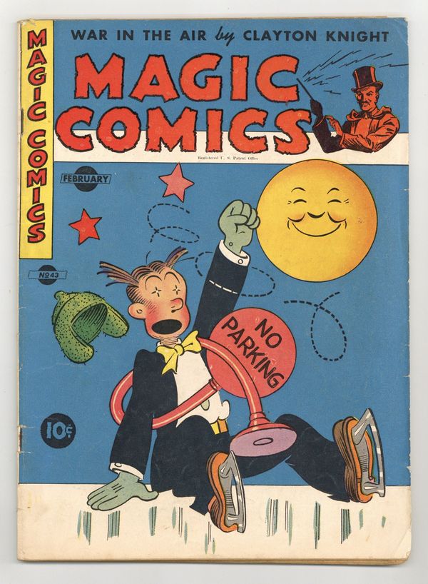 Edited by Margery McKay (sometimes credited as G. Whiz). Stories and art by Lee Falk, Phil Davis, Feg Murray, Clayton Knight, H. H. Knerr, Fran Striker, Charles Flanders, Floyd Torbert, Robert Storm, Mel Graff, Carl Anderson, Edwina Dumm, Chic Young, Bob Dunn, Frank Miller, Joe Musial, Billy DeBeck, Jimmy Thompson, Eugene L. Pollack, Tom Sims, and Bela Zaboly. Lee Falk's adventurer Mandrake the Magician gets top billing in this anthology series featuring reprints of King Features Syndicate comic strips. Mandrake discovers that sinister Grando may be his magical equal; Romance of Flying focuses on air combat. Mandrake the Magician; Seein' Stars; Jan and Aloysius; The Romance of Flying; Bunky; The Lone Ranger; Secret Agent X-9; Henry; Little Acorns; High Spots; Popeye; Barney Baxter; Blondie; Indian Lore; Tippie and Cap Stubbs; Dinglehoofer. 68 pages, Full Color. Cover price $0.10.