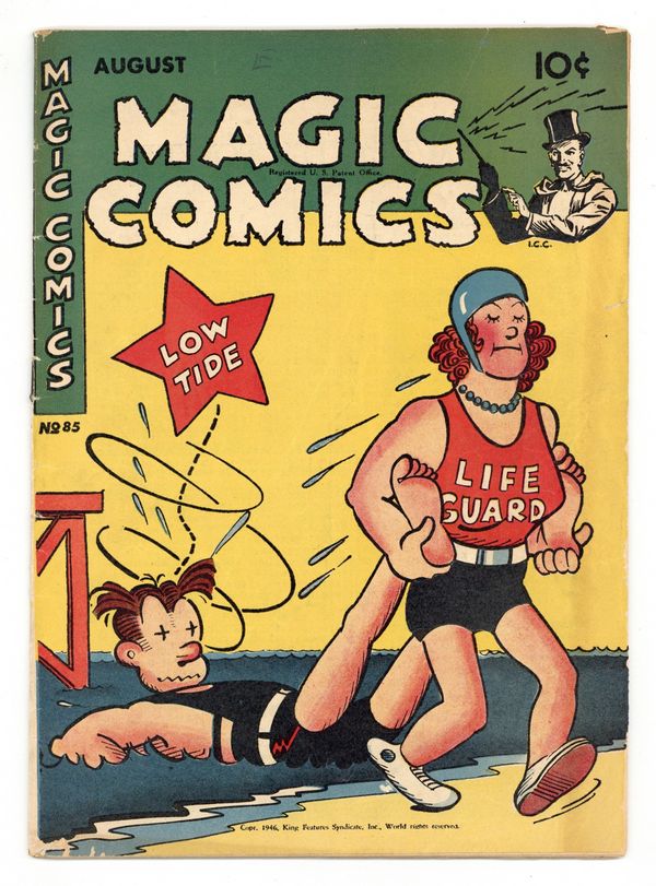 Cover by Chic Young. Edited by Margery McKay (sometimes credited as G. Whiz). Stories and art by Lee Falk, Phil Davis, Fran Striker, Charles Flanders, Roy Crane, Robert Storm, Mel Graff, Carl Anderson, Chic Young, Bob Dunn, Joe Musial, Tom Sims, and Bela Zaboly. Lee Falk's adventurer Mandrake the Magician gets top billing in this anthology series featuring reprints of King Features Syndicate comic strips. The Lone Ranger rides again; Heroes on Wings focuses on airman Leon Crane. Mandrake the Magician; Jan and Aloysius; High Spots; Buz Sawyer; The Lone Ranger; Secret Agent X-9; Henry; Little Acorns; Popeye; Blondie; Dollar-A-Dither. 32 pages, Full Color. Cover price $0.10.