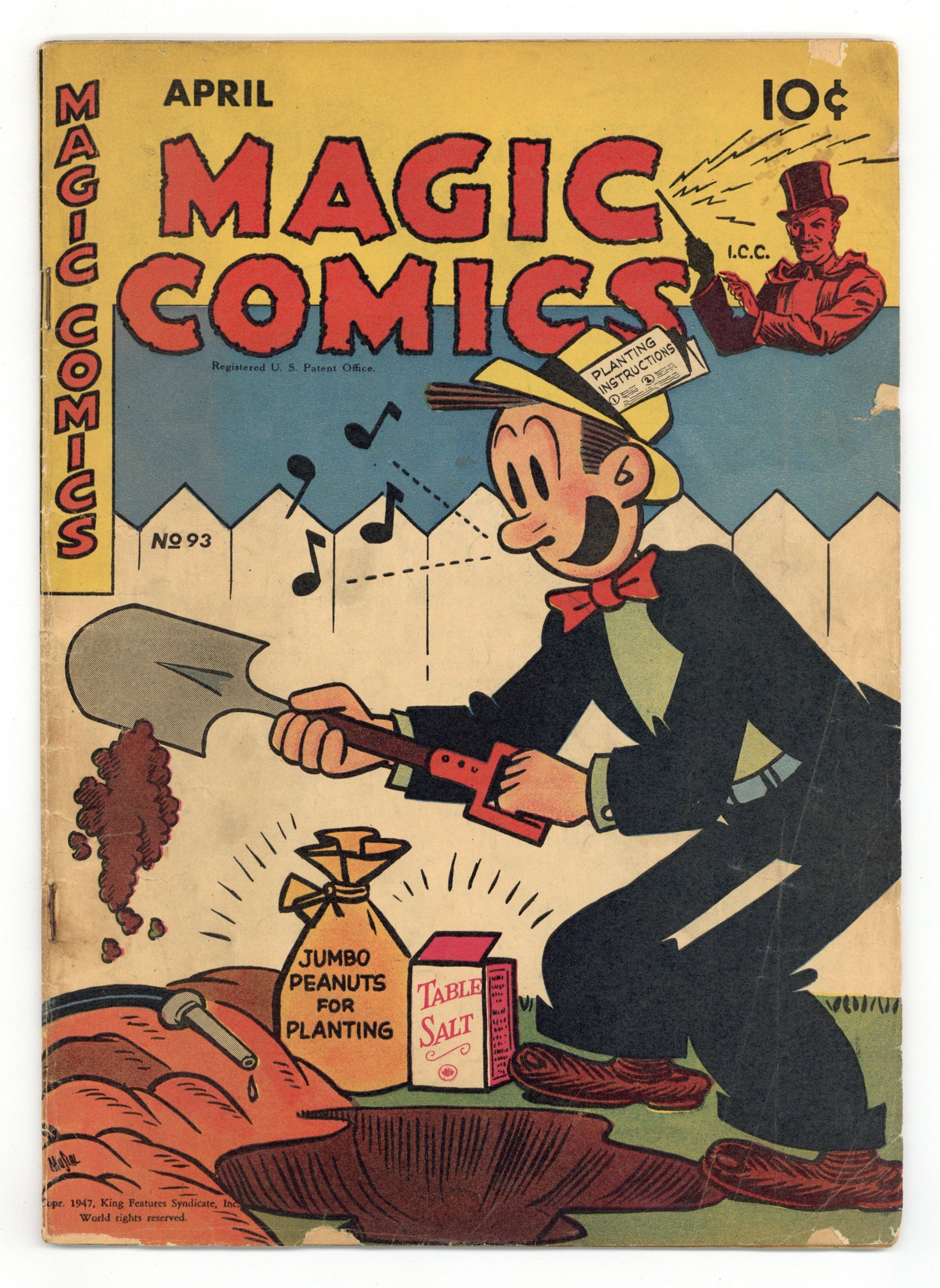 Cover by Joe Musial. Edited by Margery McKay (sometimes credited as G. Whiz). Stories and art by Lee Falk, Phil Davis, Fran Striker, Charles Flanders, Roy Crane, Robert Storm, Mel Graff, Carl Anderson, Chic Young, Bob Dunn, Joe Musial, Tom Sims, and Bela Zaboly. Lee Falk's adventurer Mandrake the Magician gets top billing in this anthology series featuring reprints of King Features Syndicate comic strips. Mandrake receives an invitation to visit Seven Dunes, and a warning to stay away; Heroes on Wings profiles air ace Capt. William T. Cherry. Mandrake the Magician; Jan and Aloysius; High Spots; Buz Sawyer; The Lone Ranger; Secret Agent X-9; Henry; Little Acorns; Popeye; Blondie; Dollar-A-Dither. 32 pages, Full Color. Cover price $0.10.