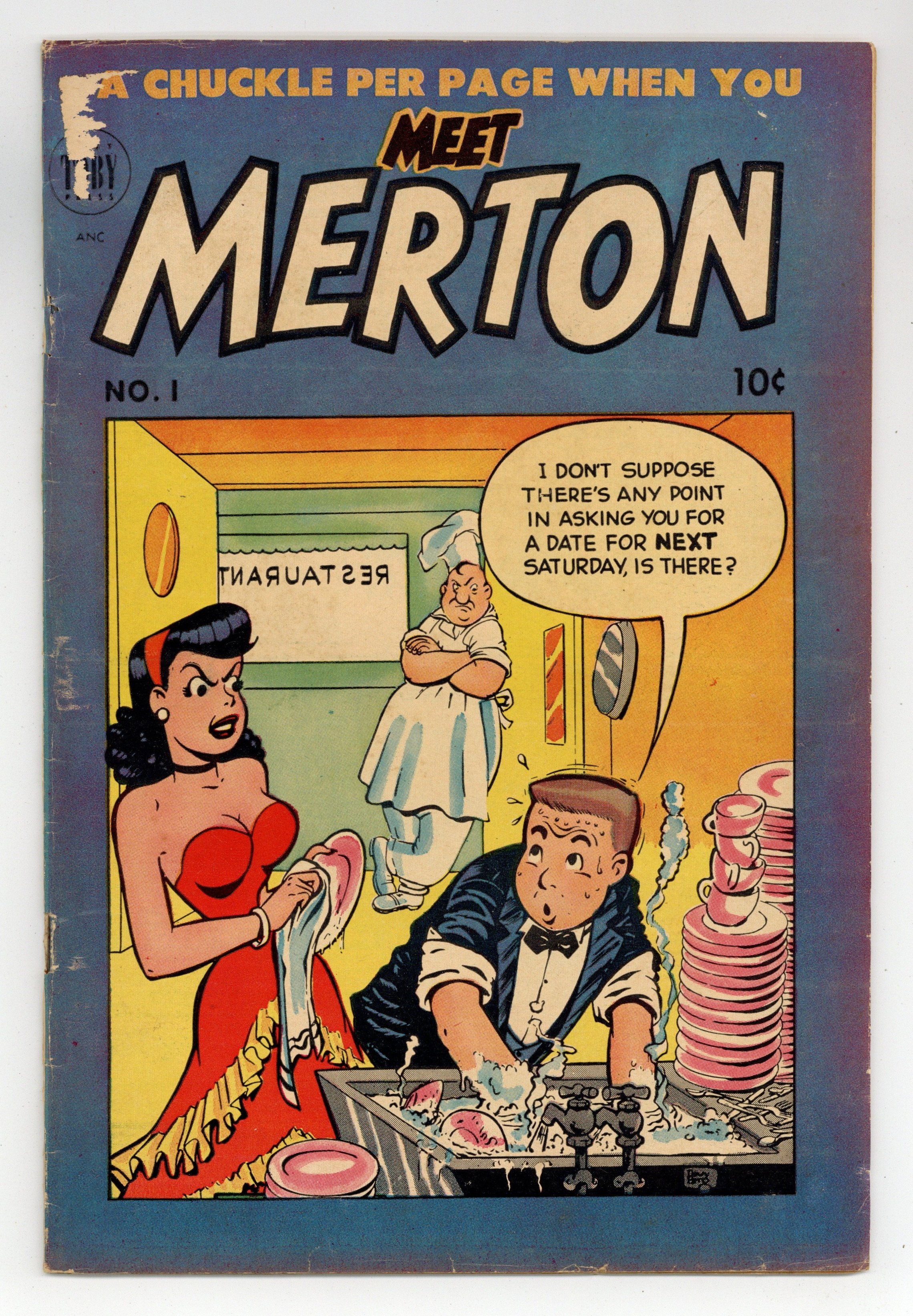 Cover by Dave Berg. Stories and art by Dave Berg and Mell Lazarus. Teen humor hijinks with Merton and his pals, featuring early art by future Mad "Lighter Side" artist, Dave Berg. Con-artist Chris tries to swindle Merton by selling him a broken-down outboard motor. Merton and his portly pal "Calories" fix up a surplus jeep, but Merton's in trouble after he promises to name it after both Marcia and Jo Ann. Merton learns why you should never make notes into paper airplanes. Foreign Make; What Goes Up!; Love and Let Love; Calories Casey; Lovely Weather for Ducts; A Quiet Saturday Night; All in Fun. 36 pages, Full Color. Cover price $0.10.