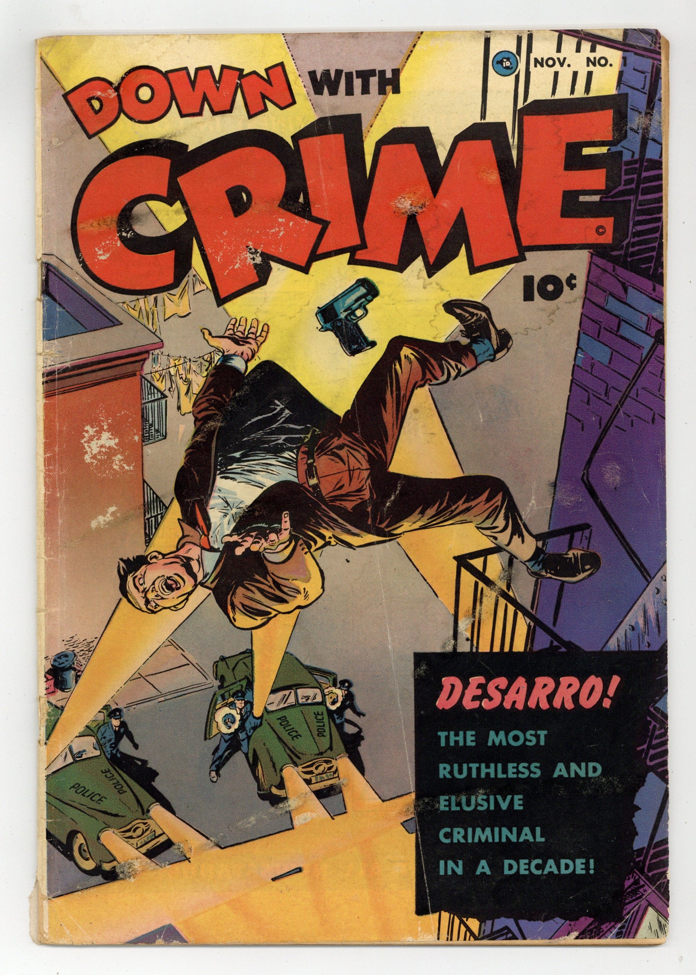 Stories and art by Mike Sekowsky and Dick Kraus. Classic pre-Code crime comics from Fawcett. Spurned by the woman he loved, escape artist Desarro begins using his skills for evil, eluding the cops so often he becomes known as the Houdini of Crime. Escaped convicts get "The Professor" to help them plan the biggest train robbery in history. Gambler Lucky Eddie makes his own luck, with things like loaded dice and two-headed coins, but he's too sloppy to get away with that for long. The Houdini of Crime; Express Car #105; Photo Finish; Born Lucky. 32 pages, Full Color. Cover price $0.10.