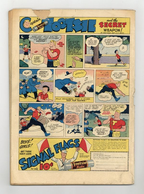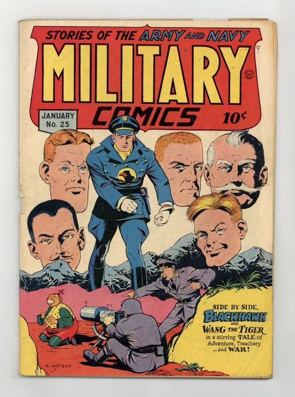Cover art by Alex Kotzky. Wang the Tiger starring Blackhawk, pencils by John Cassone, inks by Alex Kotzky. Untitled stories starring Death Patrol (script and art by Al Stahl), Sniper (script by Ted Udall, art by Vernon Henkel), and P.T. Boat. Girl Wanted starring Private Dogtag, script and art by Bart Tumey. Coast Guard Cutter Battles Six U-Boats starring Secret War News, script and art by Fred Guardineer. 60 pgs. $0.10. Cover price $0.10.
