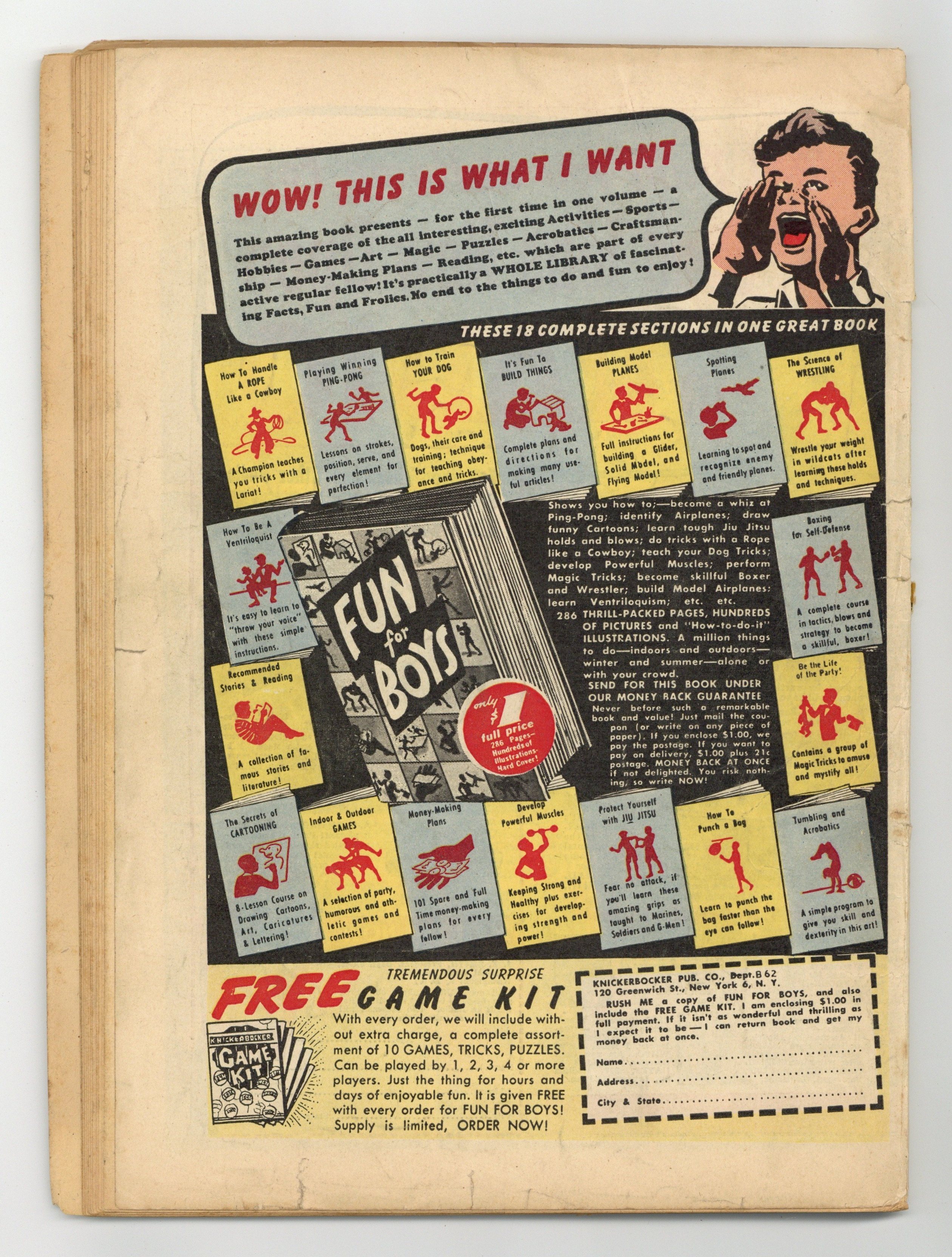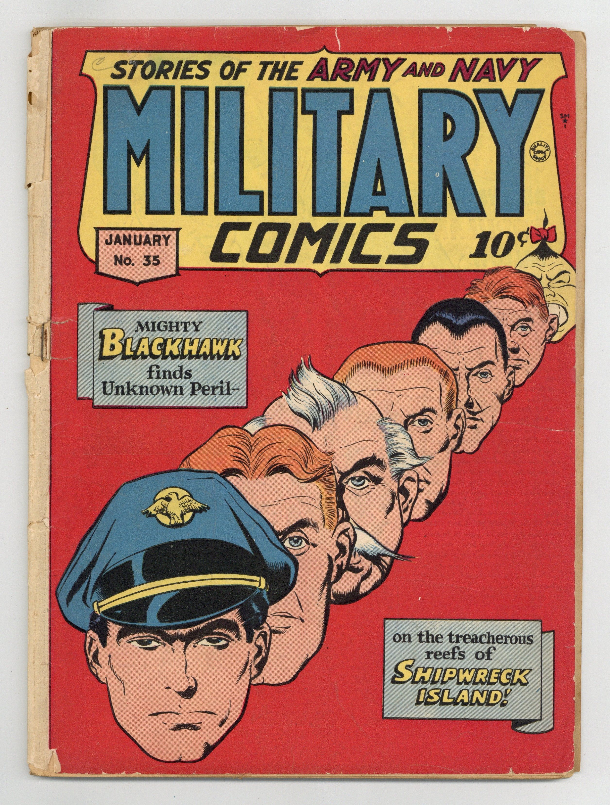 Cover art by Al Bryant. Shipwreck Island starring Blackhawk. Pity the Poor Working Girl starring Choo Choo and Cherry. Untitled stories starring Death Patrol (script and art by Al Stahl), and Private Dogtag (script and art by Marvin Stein). The Bugle of Tyke MacDougall featuring P.T. Boat. American Infantry Pierce Jungle To Smash Japanese featuring Secret War News, art by Bill Quackenbush. 60 pgs. $0.10. Cover price $0.10.