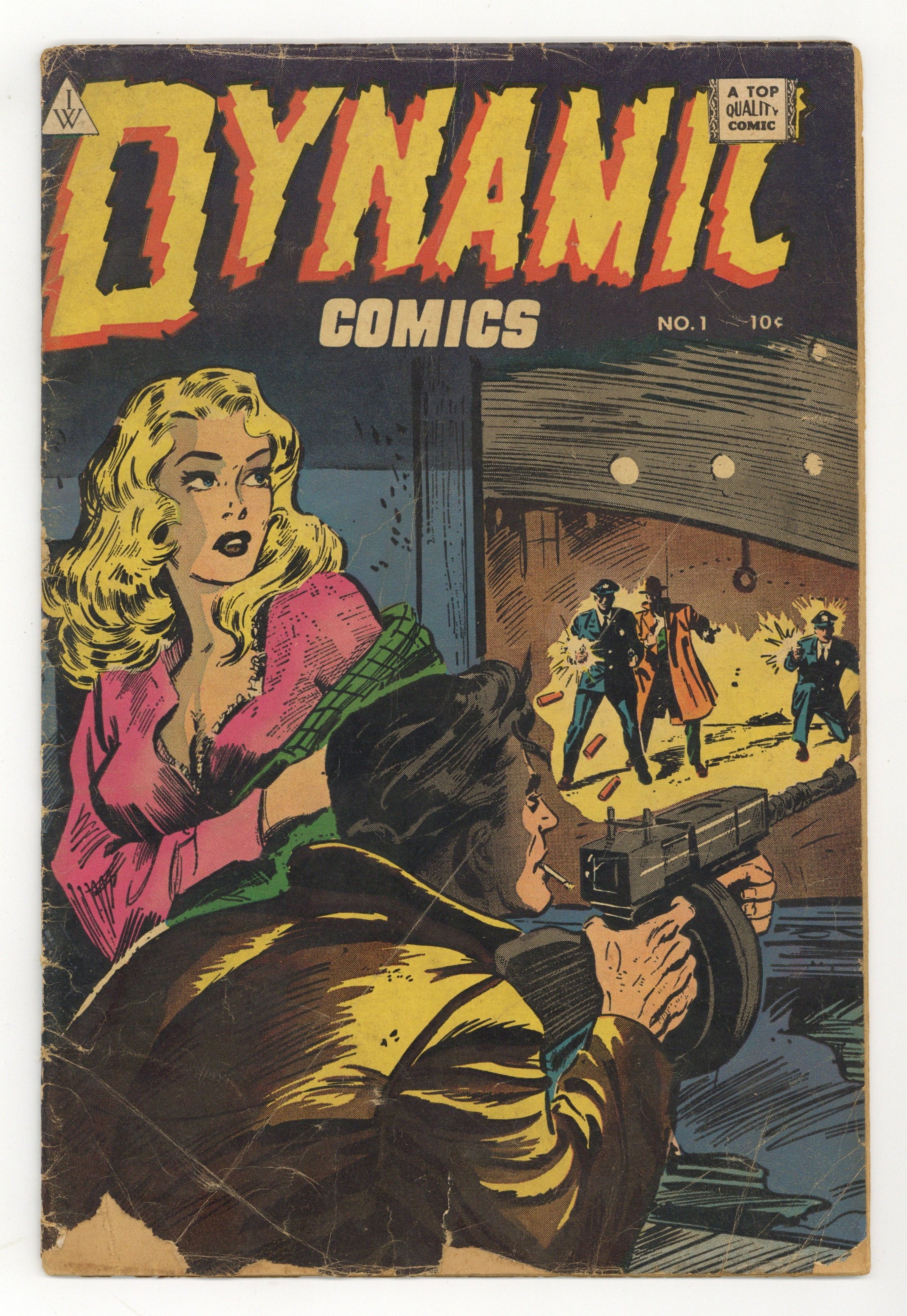 Cover by Everett Raymond Kinstler. Stories and art by Joe Beck, Ralph Mayo, and Paul Gattuso. Reprints from the early comics anthology Dynamic Comics, featuring superhero and adventure stories. Dynamic Man's powers don't protect him from a smooth-talking crook who frames him as an accomplice to murder. Young socialite Lauren Mason says "Yankee Doodle Dandy!" and transforms into Yankee Girl. In her only appearance, Yankee Girl uncovers a plot to murder the wealthy with their own housecats. New Jersey police are alerted to a crime by canaries and potted geraniums. Plus illustrated sports trivia. Good-girl cover by comics and fine-art legend Everett Raymond Kinstler. Dynamic Man; Crime on the Run; Six Shooter Surprise; Yankee Girl; Put Me on a Marble Slab; It's a Rule. 36 pages, Full Color. Cover price $0.10.