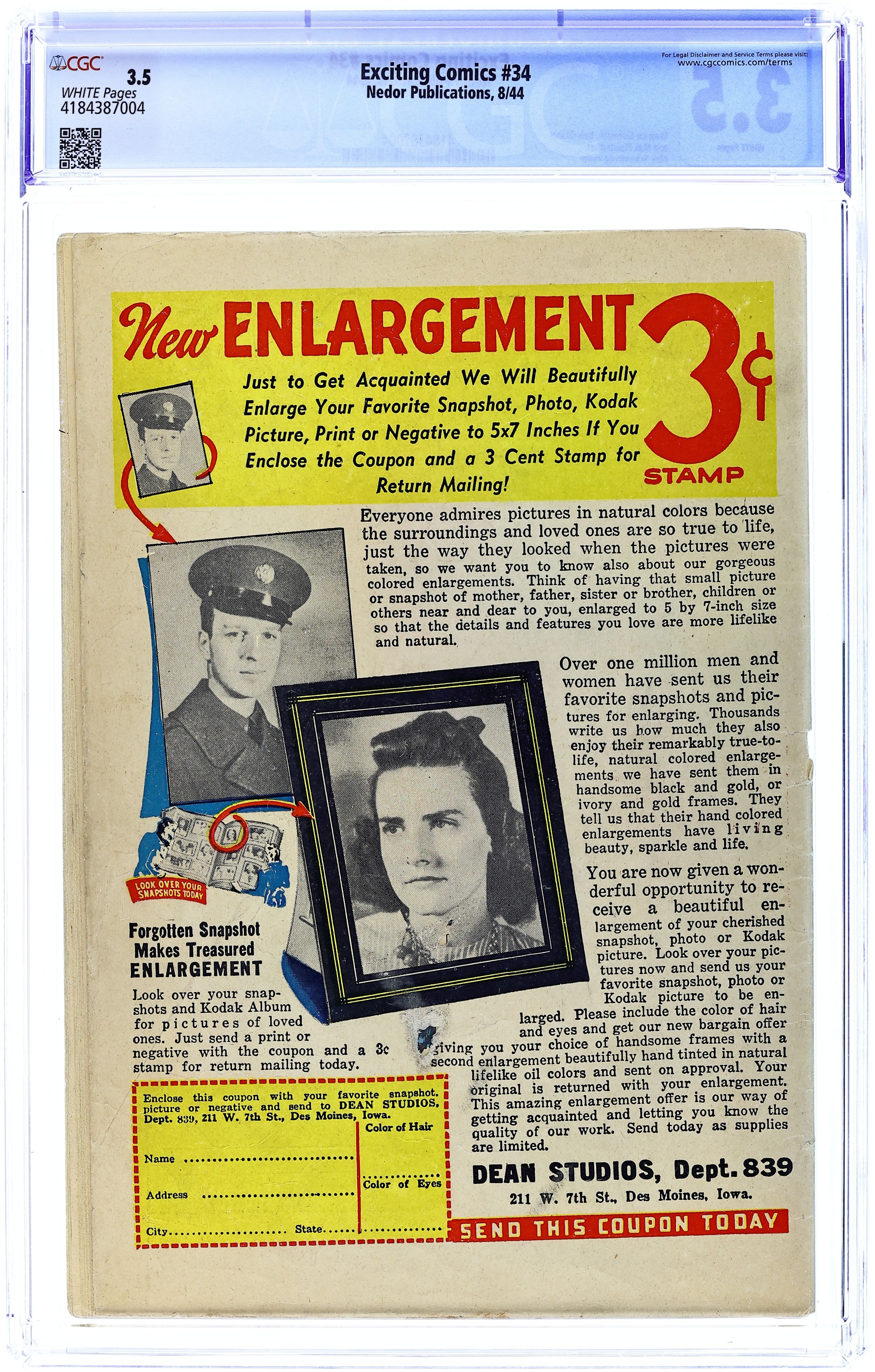 Published Aug 1944 by Nedor/Better Publications.$1,399.00