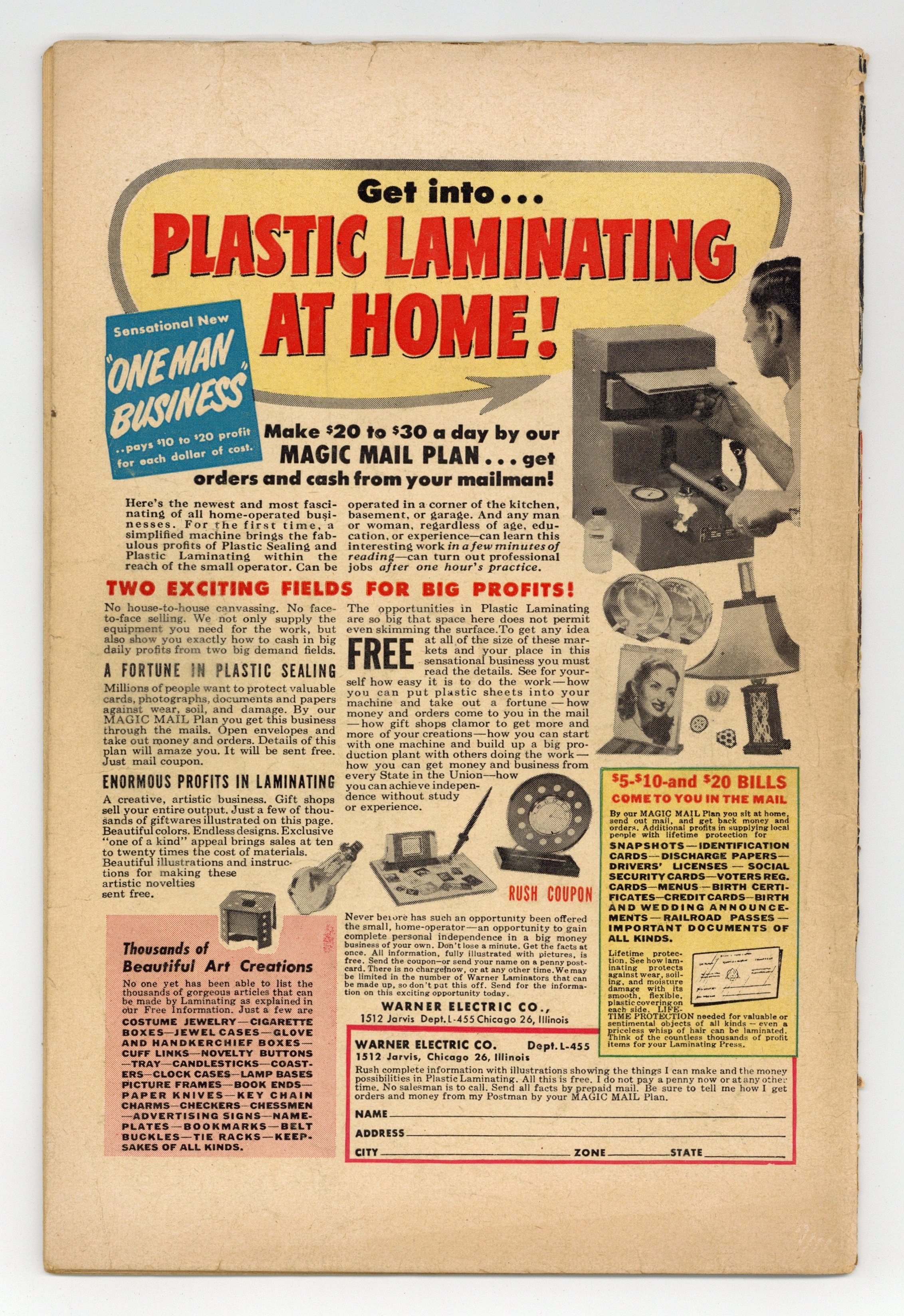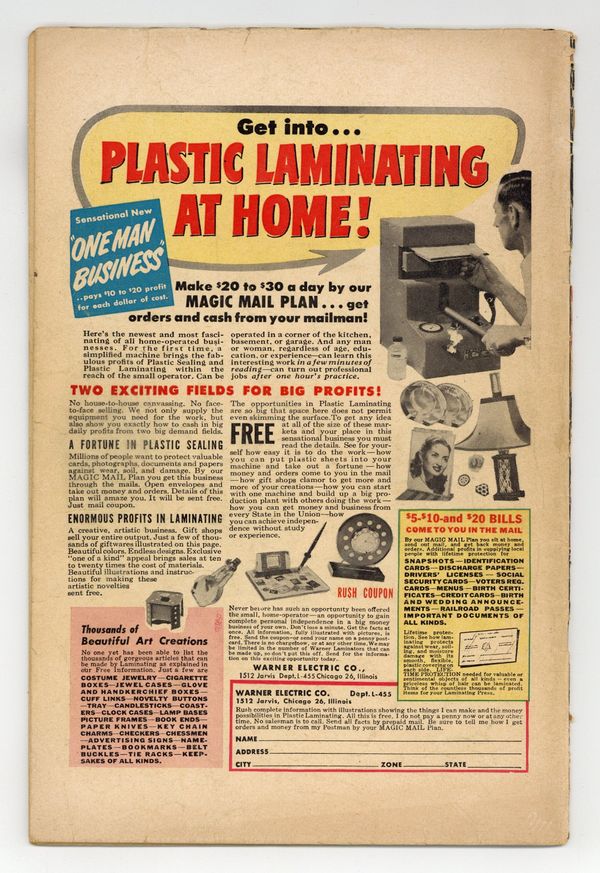 Published May 1953 by Standard Comics.$135.00- 5" cumulative spine split. Water damage.