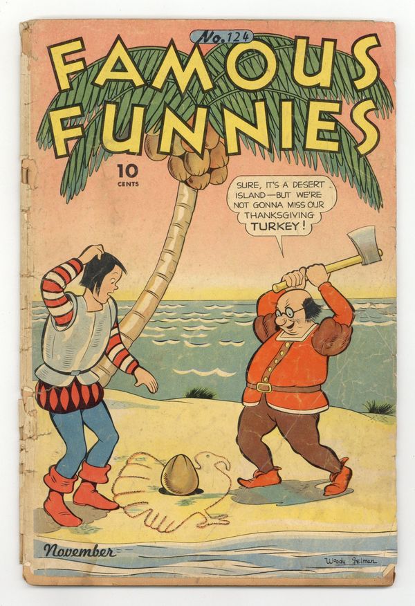 Tags: Comic Strip ReprintsPublished Nov 1944 by Famous Funnies.$18.00- Cover detached. Water damage. 1 1/2" cumulative spine split. Centerfold detached at one staple.