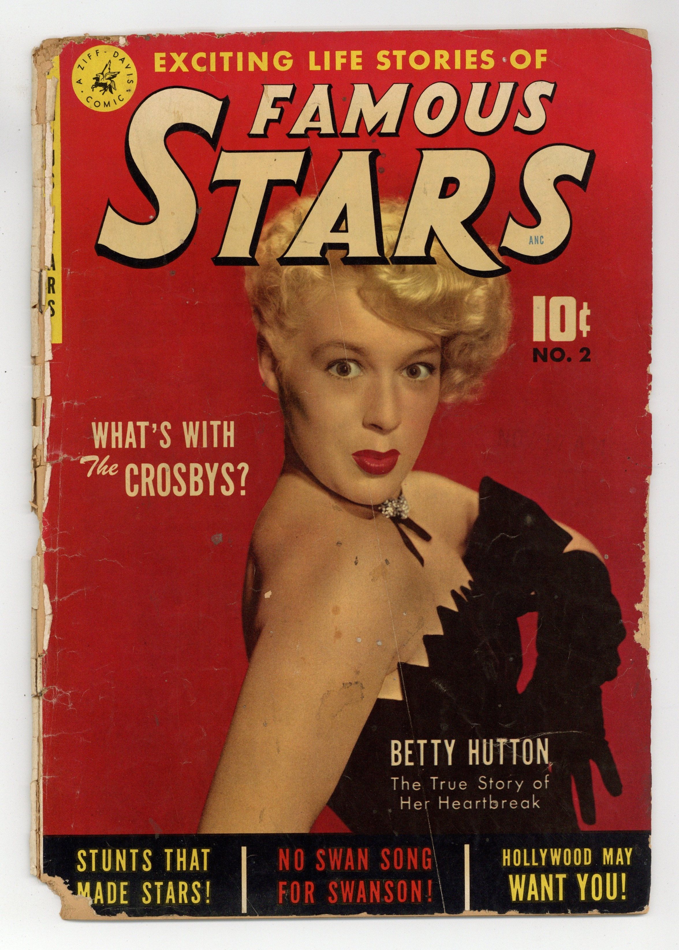 Cover photo of Betty Hutton. Laugh, Betty, Laugh, art by Ogden Whitney; bio of Betty Hutton. Hollywood Wants You; Talent scouts look for new faces for the movies. What's with the Crosbys?, art by Bill Everett; Bio of Bing Crosby. A Star Looks Heavenward, art by Ogden Whitney; bio of Colleen Townsend. No Swan Song for Swanson; bio of Gloria Swanson. Stunts That Made Stars, art by Bill Everett. 36 pgs. $0.10. Cover price $0.10.