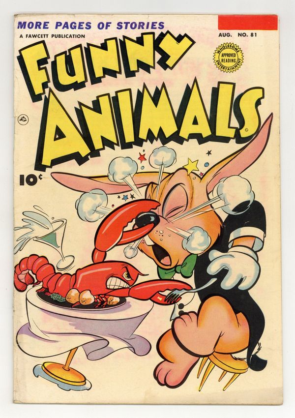 Cover by Chad Grothkopf. Stories and art by Chad Grothkopf and others. Funny-animal comics from Fawcett, featuring Hoppy the Bunny, Bobby Bantam and Kenny Kangaroo. At a restaurant, Bobby Bantam's uncle Forgetful Fogety accidentally claims a magician's magic-trick-laden coat. In the second and last appearance of "The Forest Folk," Gopher and Mole conspire to get maple sugar from Fox's maple trees to make Gopher's pie for the pie contest. Hoppy and Quick-Quack follow an ape stealing lollipops to a mystery at the waterfront. Funny Chicken; Bobby Bantam: Watch Your Coat; Teddy Bear and Skeezel the Weasel: Easy Money; Buzzy Bee; Kenny Kangaroo; Champ the Chump of Chimps: Stop, Luck, and Listen; The Forest Folk: Prize Surprise; Hoppy the Marvel Bunny: The Mystery of the Last Licks. 32 pages, Full Color. Cover price $0.10.
