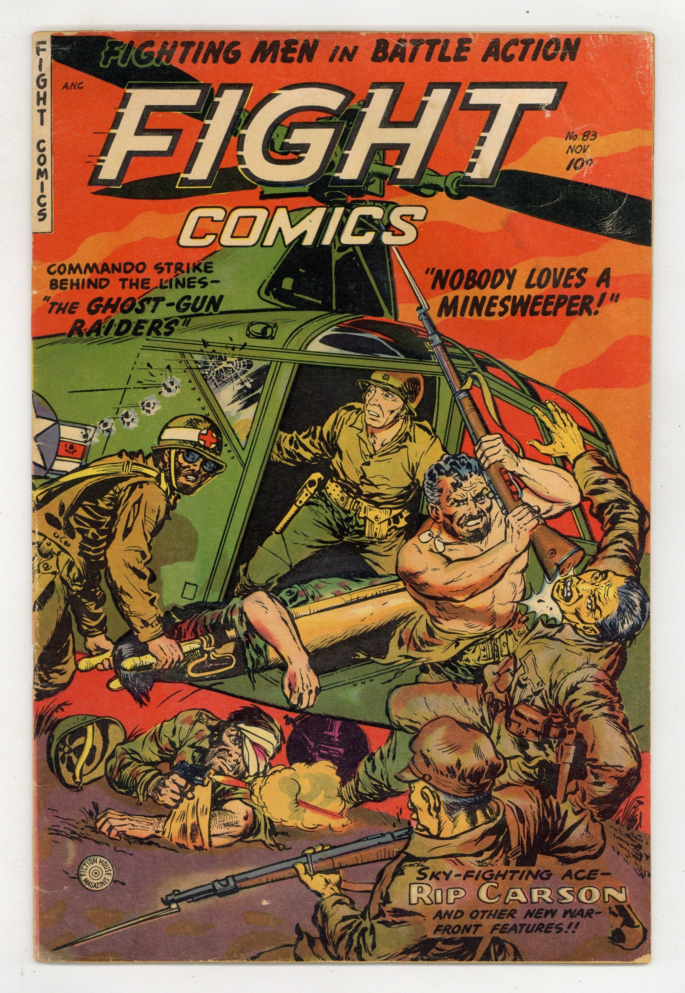 Cover by Maurice Whitman. Edited by J. F. Byrne and Jerry Iger. Stories and art by Ken Battefield and Robert Webb. A combat-themed anthology from Fiction House that featured early work from many future comics legends (often uncredited) in the Eisner-Iger Shop. A soldier reflects on the short, stressful life of the mine-sweeper; Anti-communist mystery woman Madam Zero returns, this time in Korea; The life of Revolutionary War hero Anthony Wayne, whose military exploits and fiery personality earned him the name Mad Anthony. Nobody Loves a Mine-Sweeper!; Madam Zero; Army of the Dead; The Ghost-Gun Raiders; Famous Fighters; Rip Carson. 32 pages, Full Color. Cover price $0.10.