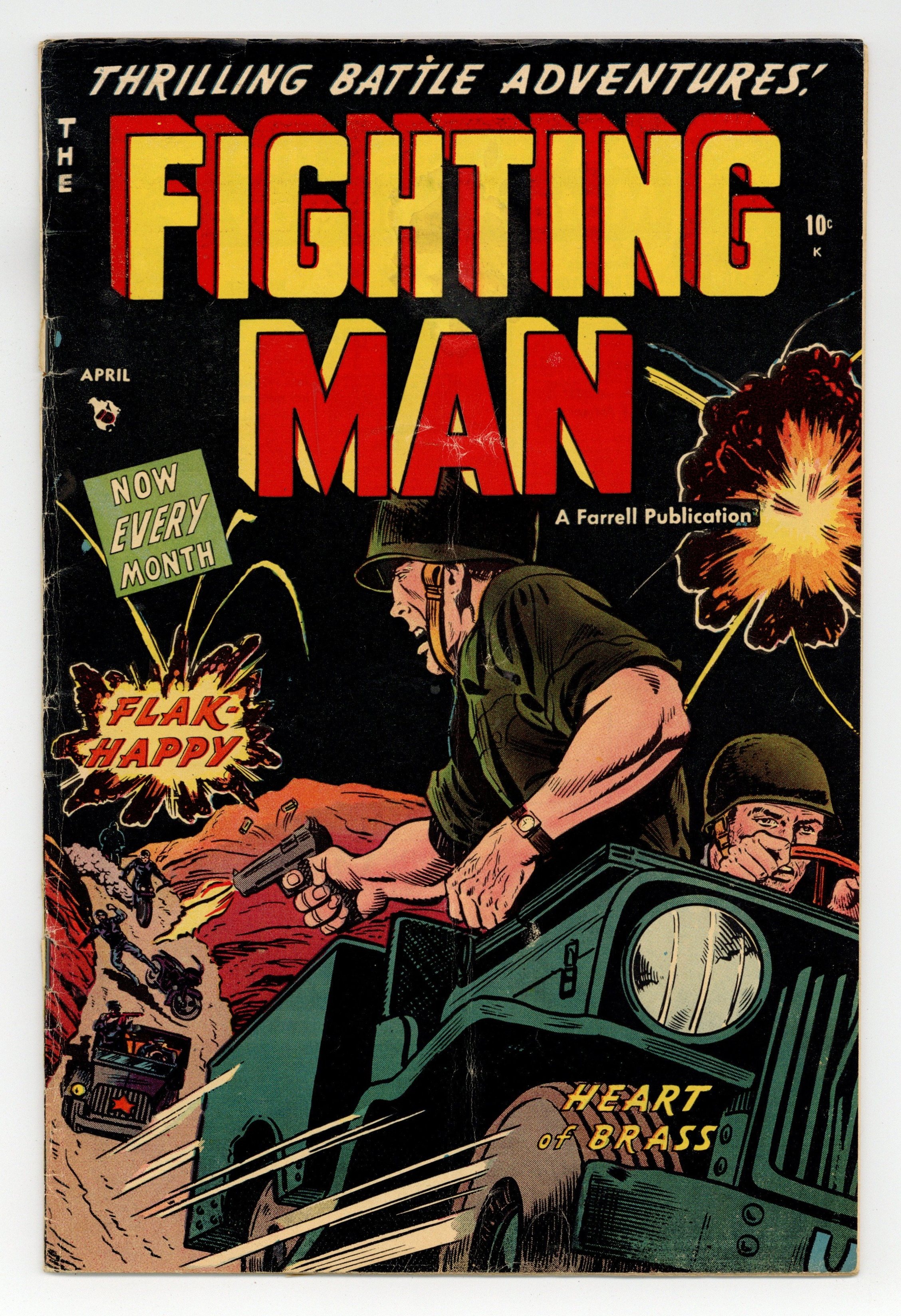 Stories by unknown. Art by unknown. Thrilling battle adventures! Captain Rodgers and his men are ordered to take a series of ridges from the Koreans in "Bloody Fingers"! Plus: Lieutenant Smithers is called in to help remove booby traps from a Korean village in "Booby Trap"; Brigadier General James Parnell goes to the front when he realizes his regiment is in trouble in "Heart of Brass"; and Captain Noel goes up in a recon plane to find concealed flak batteries in "Flak-Happy"! Also: 2-page text story "Plot in Chumunjin"! 32 pages, full color. Cover price $0.10.