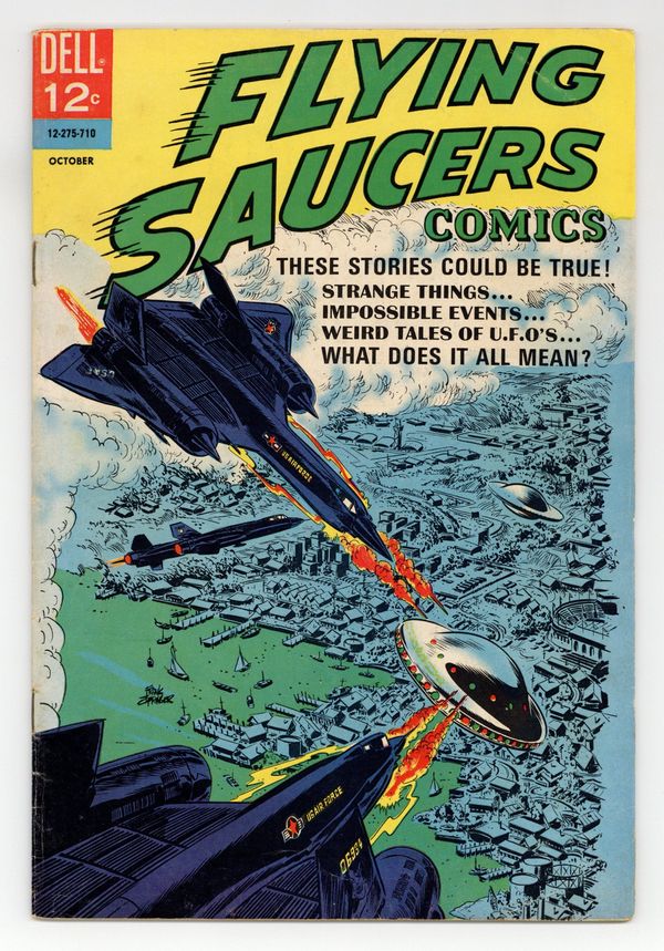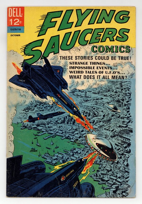 Number on cover 12-275-710. Cover by Frank Springer. Stories by unknown. Art by Frank Springer, Sal Trapani, Dick Giordano and Chic Stone. These stories could be true! Strange things...impossible events...weird tales of UFOs -- what does it all mean? Featuring the tales "Proof...Doesn't Prove a Thing," "The Fear of Death," "A Nightmare in Broad Daylight" and "The Race 'Nobody' Won"! 36 pages, full color. Cover price $0.12.
