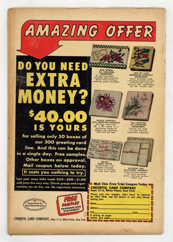 Published Apr 1955 by Mainline/Charlton.$2,000.00- Cover detached, cover oxidation, water spots.