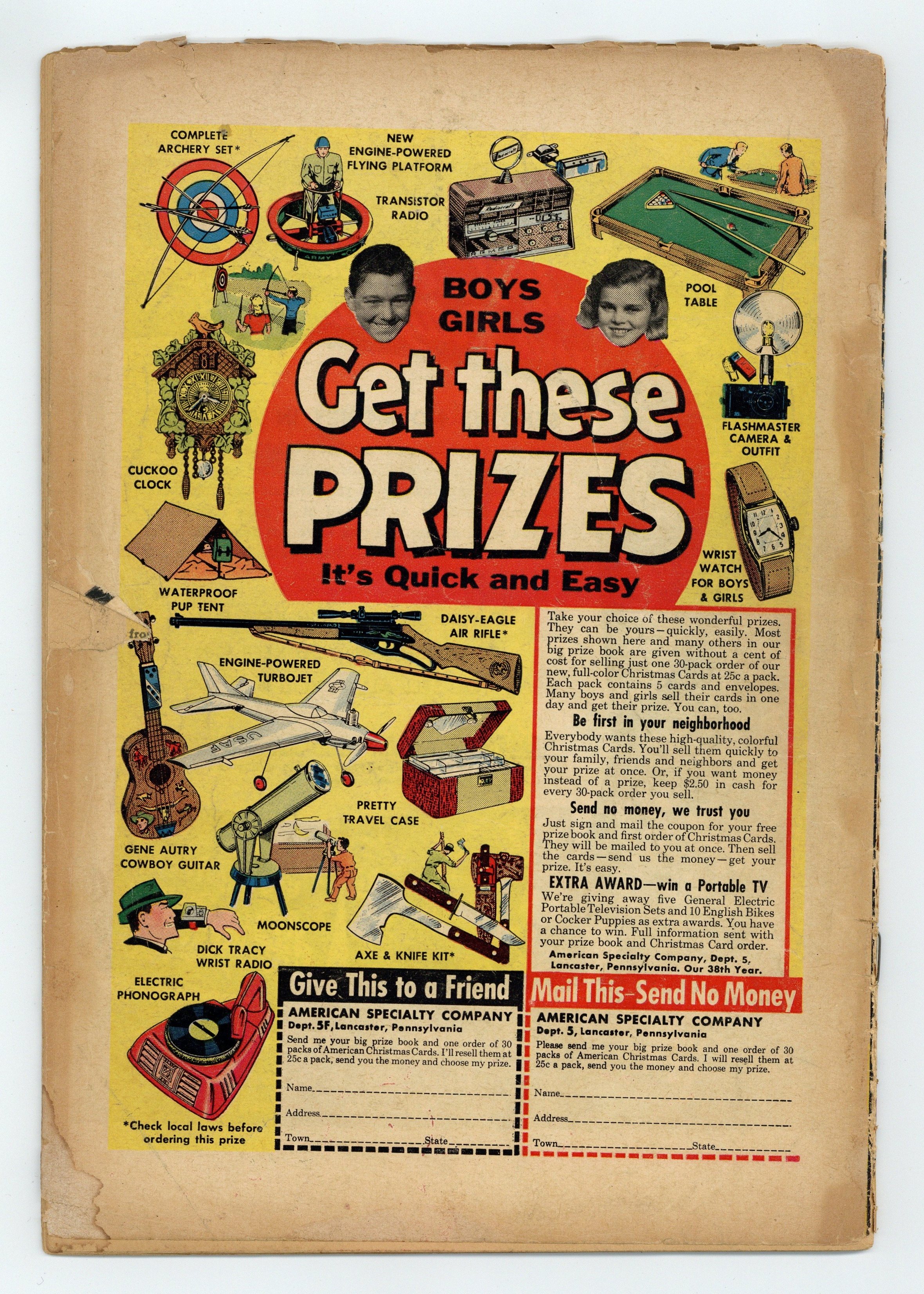 Published Dec 1956 by National Periodical Publ.$39.99- 1" Cumulative spine split. Cover oxidation. Water damage. Interior tearing.