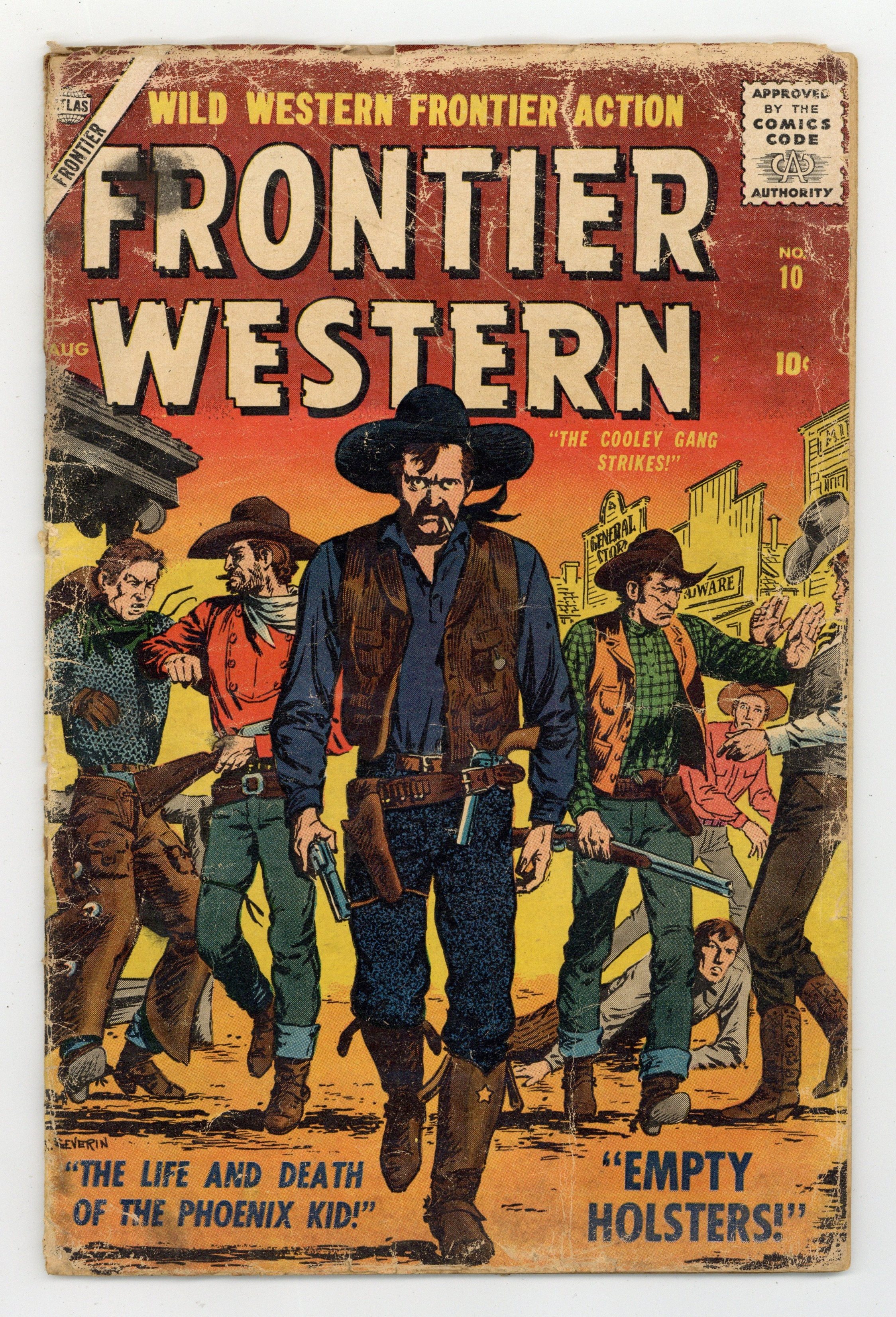 "The Life and Death of the Phoenix Kid" (art by Jay Scott Pike), "The Cooley Gang Strikes," "Medicine Man," "Empty Holsters" (art by Sid Check), and "Dangerous Game." John Severin cover. Cover price $0.10.