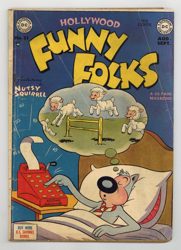 Published Aug 1949 by National Periodical Publ.$13.00Cover art by Rube Grossman. Untitled Nutsy Squirrel story, art by Rube Grossman; Nutsy decides to become a painter (of mustaches...on other people's paintings). Wheaties ad featuring Bob Lemon. Untitled Ozzie Owl story, art by Rube Grossman; Once all the sheep run away, no one can get any sleep anymore, so it's up to Ozzie to figure out a way to get them to come back! Untitled Bernard the Brave, art by Otto Feuer; Bernard has to rescue a rabbit who is trapped on the railroad tracks. Untitled story, art by Howie Post; A conman (squirrel? chipmunk?) tries to trick Plato out of his money, but Plato's too dumb for him. Untitled Roly and Poly story, art by Rube Grossman; Mugsy swipes the boys' fishing rods so they concoct an elaborate scheme involving a fake fish to get back at him. "Why the Wolf Howls" Patrick Parrot's Unnatural History text story. Untitled Nutsy Squirrel story, art by Rube Grossman; Nutsy reinterprets the rules of baseball, much to the chagrin of his teammates. Superman on Safety First! public service announcement, script by Jack Schiff, art by Win Mortimer. Jimmy Wakely ad. 52 pgs., full color. Cover price $0.10.