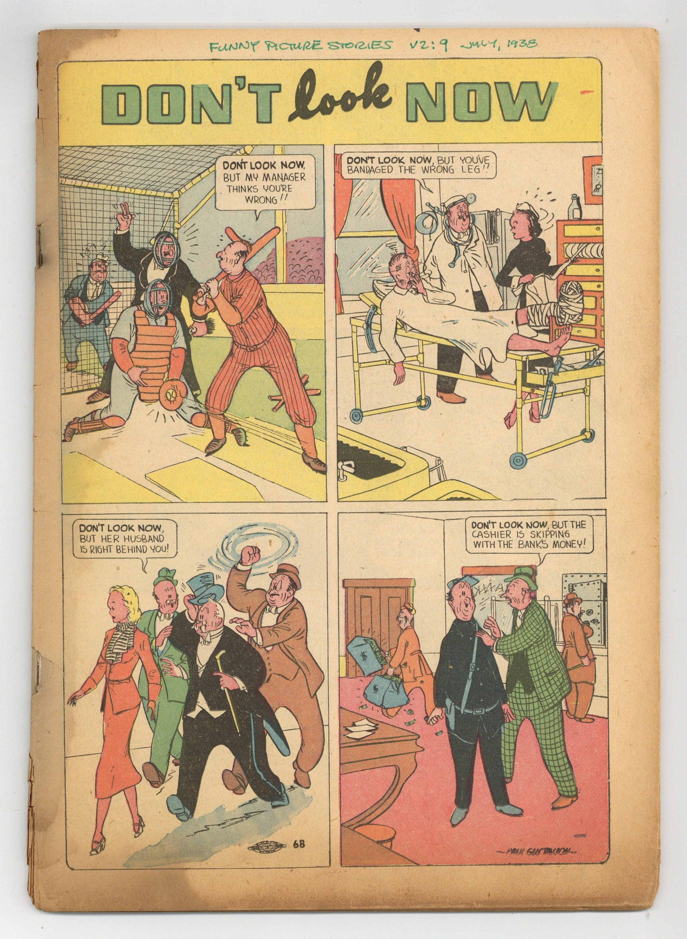 Published Jul 1938 by Comics Magazine Company.$225.00- Comic is complete other than being coverless. Oxidation. 3" Cumulative spine split with splitting to interior warps. Brittle. Unattached reproduction cover included.
