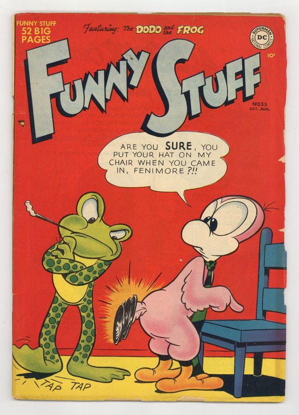 $21.00Cover art by Otto Feuer. Dodo and the Frog story, art by Otto Feuer. Blabber Mouse story, art by Rube Grossman. Dizzy Dog story, script and art by Sheldon Mayer. Blackie Bear story, art by Rube Grossman. Balance Your Fun Diet public service announcement, script by Jack Schiff, art Bob Oksner. 52 Pages, Full Color. Cover price $0.10.