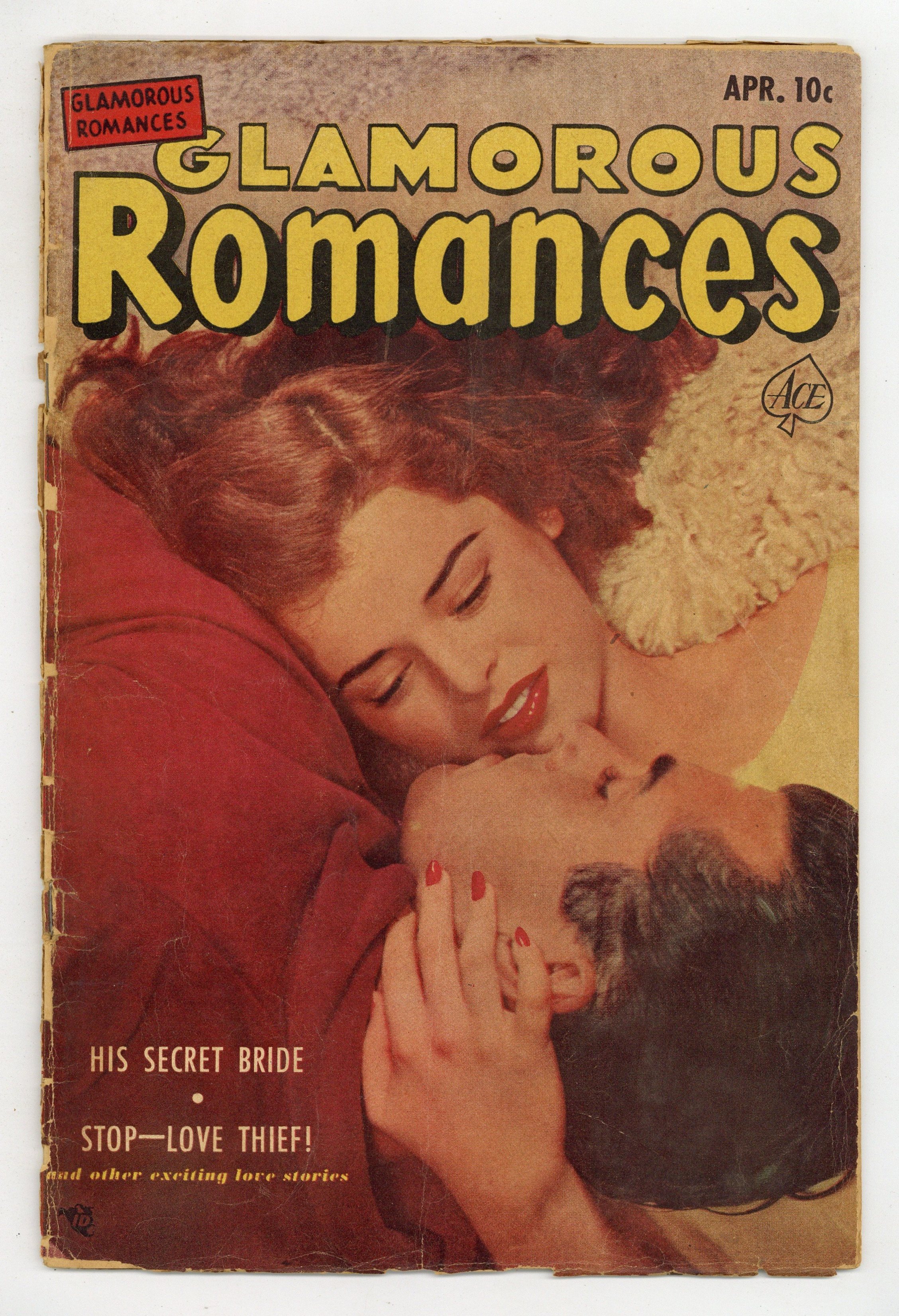 Photo cover. In order of appearance: "The Secret Bride"; "Guilty Kisses"; "Reluctant Fiancé" art by Alice Kirkpatrick; and "Stop, Love Thief!". "Glamorizing Yourself: Romance in Your Hands..." text article reprinted from "Glamorizing Yourself..." in Glamorous Romances (1949) #41 and from "Help Yourself to Allure..." in Love Experiences (1949) #13, and reprinted as "Your Charm Guide..." in Love at First Sight (1949) #41. 36 pages. Full color. Cover price $0.10.