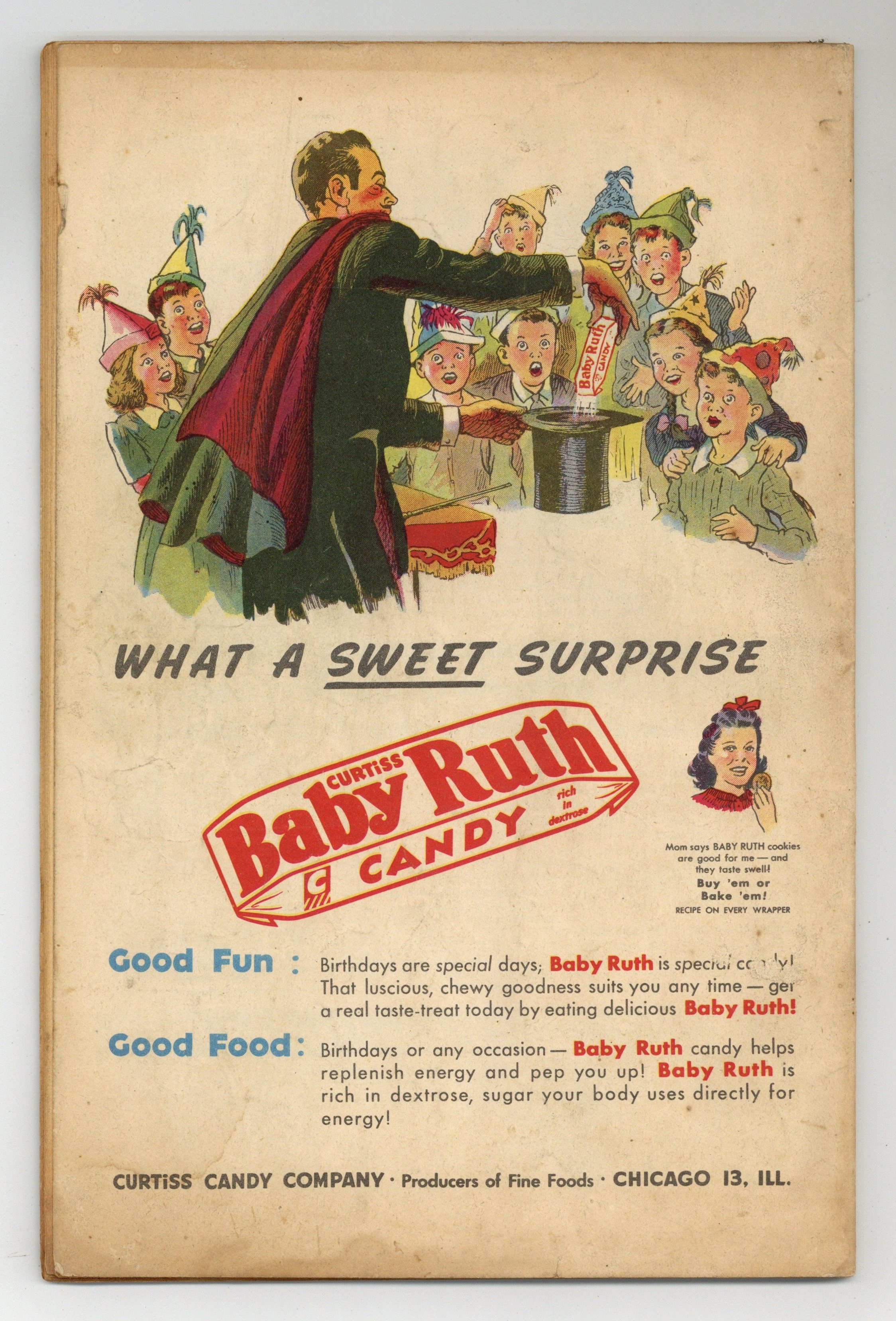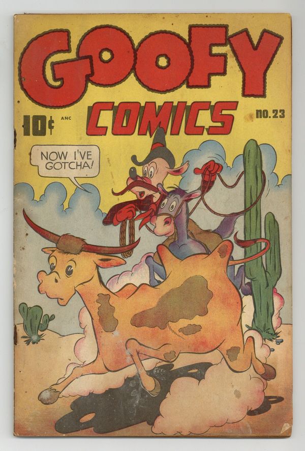 Contains a Frank Frazetta illustration. Frazetta illustrations appear in sixteen consecutive issues of Goofy Comics (1943 Nedor/Standard) (#20-#35) and in eighteen consecutive issues of Happy Comics (1943) (#20-#37). Contains an advertisement for a Dick Tracy Wrist Radio. Contains funny animal stories. In order of appearance: "Uncle Pigly"; "Peter Pigly"; "Wilbur Fox" story by Hubie Karp, art by Lynn Karp; "Bagshaw Bear" by Jack Bradbury; "Daffy and Dilly"; "Whitey" story by Hubie Karp, art by Lynn Karp; "Ragsdale" art by Lynn Karp; and "Adam". Illustrated text stories: "Randy Raccoon's Problem: This Ambitious Little Animal Had Nothing to Do!" by Donald Bayne Hobart, illustration by Frazetta; "The Bright Idea: Paul Pompano Throws Some Light on the Subject!" by Mickey Klar Marks; and "The Lost Bark: Poor Dan Dog Just Couldn't Make a Sound!" by Jerry Albert. 52 pages. Full color. Cover price $0.10.