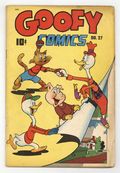 Contains three Frank Frazetta illustrations. Frazetta illustrations appear in sixteen consecutive issues of Goofy Comics (1943 Nedor/Standard) (#20-#35) and in eighteen consecutive issues of companion title Happy Comics (1943) (#20-#37). Contains funny animal stories. In order of appearance: "Goofy Gander in the Land of the Wishing Well"; "Uncle Pigly Gets the Bird!" by Vincent Fago; "Hubert" by Allan Hubbard; "Wilbur Fox" story by Hubie Karp, art by Lynn Karp; "Tooter"; "Goofy Gander"; "Li'l Thomas Hippopot" by Jack Bradbury; "Uncle Pigly"; and "Burton" art by Harris Steinbrook. Illustrated text stories: "The Reckless Horse: This Galloping Steed Kept Running Into Trouble!" by Lily K. Scott, two illustrations by Frank Frazetta; and "Lonnie the Lone Wolf: A Boastful Animal Finally Learns His Lesson!" by Betty Cummings, illustration by Frank Frazetta. 52 pages. Full color. Cover price $0.10.