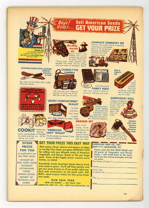 Cover by Jerry Robinson. Stories and art by George Roussos, Jerry Robinson, Ernie Schroeder, Art Helfant, and Bob Fujitani. The first comic to feature The Green Hornet, the radio-turned-movie superhero from the creator of the Lone Ranger. Crooks robbing a museum are the first ones enslaved by a revived mummy, in a story with art by Joker co-creator Jerry Robinson. Spirit of '76 seeks a rogue Japanese mini-sub that is sinking Allied vessels thousands of miles from Axis territory. Twinkle Twins encounter Axis spies, a disintegration ray, and a runaway gorilla. Green Hornet: The Mummy Murders!; The Spirit of '76: The Tiger Shark's Lair; Green Hornet: Last Mile Vengeance; Twinkle Twins: Gorilla-Tactics; Zebra: Death Plays the Outfield; Mighty Midgets: Lion Hunters; Flak From a Flying Fortress. 48 pages, Full Color. Cover price $0.10.