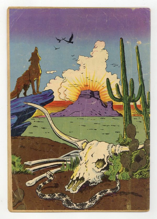 Cover by Clarence Doore. Stories and art by Dan Barry, Murphy Anderson, George Tuska, Ed Silverman and Alex Kotzky. Tough marshal Bob Hardie is better known to friend and foe alike as The Hawk. The lawless town of Adobe Bend must change after Marshal Bob "Hawk" Hardie rides into town, but outlaw Slash hires Lobo Moreno to get rid of The Hawk. Marshal Hardie arrives in Armadillo Flats and goes after Reb Sutton and his band of killers. Pajaro, new chieftain of the Mescaleros, declares war on white settlers, but his blood brother Sangre tries to convince him otherwise, in a story with art by comics legend Murphy Anderson. Plus the lyrics to the Western tune "Billy Venero" and a comics biography of Walter Scott, the man known as "Death Valley Scotty." Nice painted cover by Clarence Doore. Death Valley Scotty; The Law of the Colt; Cowboy Songs of the Old West: Billy Venero; A Fair Exchange; Six-Gun Showdown; Ghost Towns of the Old West: Cripple Creek; Blood Brothers; The Great American Desert. 32 pages, Full Color. Cover price $0.10.