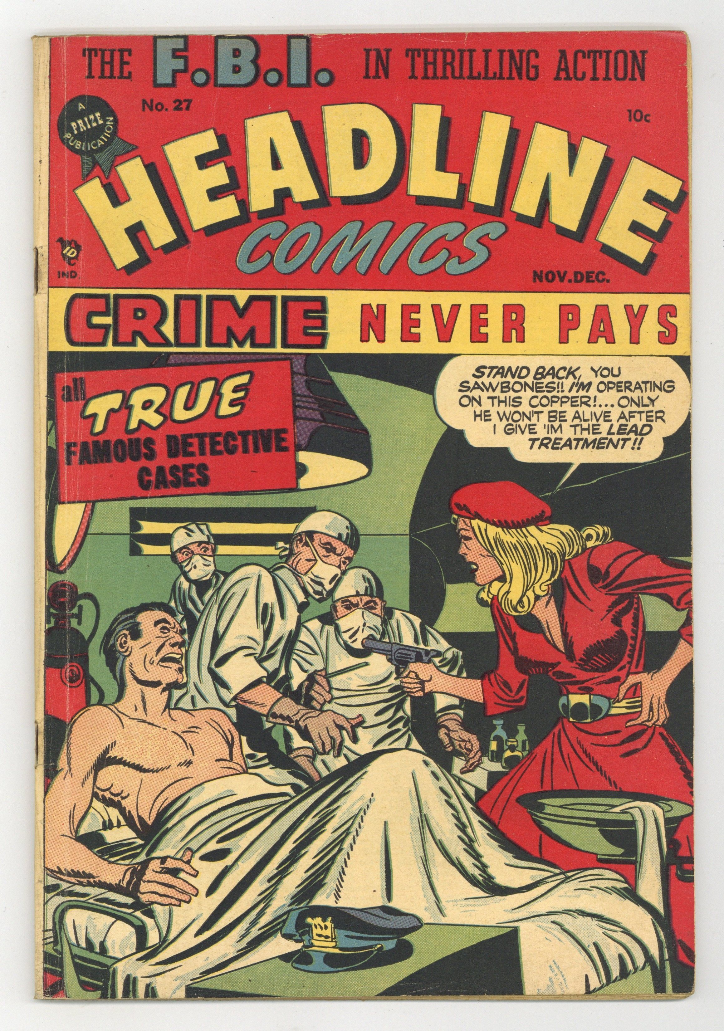 $105.00Cover by Jack Kirby. Stories and art by Bill Draut, Joe Simon and Jack Kirby. Headline Comics featured the lurid, hard-edged crime dramas then in vogue, many by Captain America creators Joe Simon and Jack Kirby. The notorious Simon-Kirby crime classic, "Stella Mae Dickson...the Bobby Sox Bandit Queen"; The truth about legendary outlaw Jesse James; A gang starts a phony fortune-teller racket with Flo as the medium. Stella Mae Dickson...the Bobby Sox Bandit Queen; The Guns of Jesse James; The Death of the Gambler King; The Spark of Murder; Bring Me His Corpse; I Was the Front for the Merciless Spirit Swindlers. 48 pages, Full Color. Cover price $0.10.