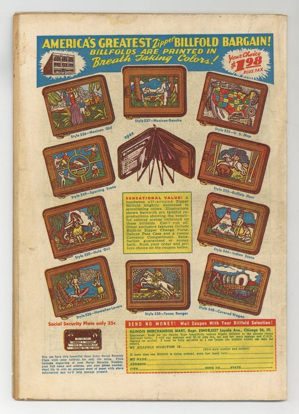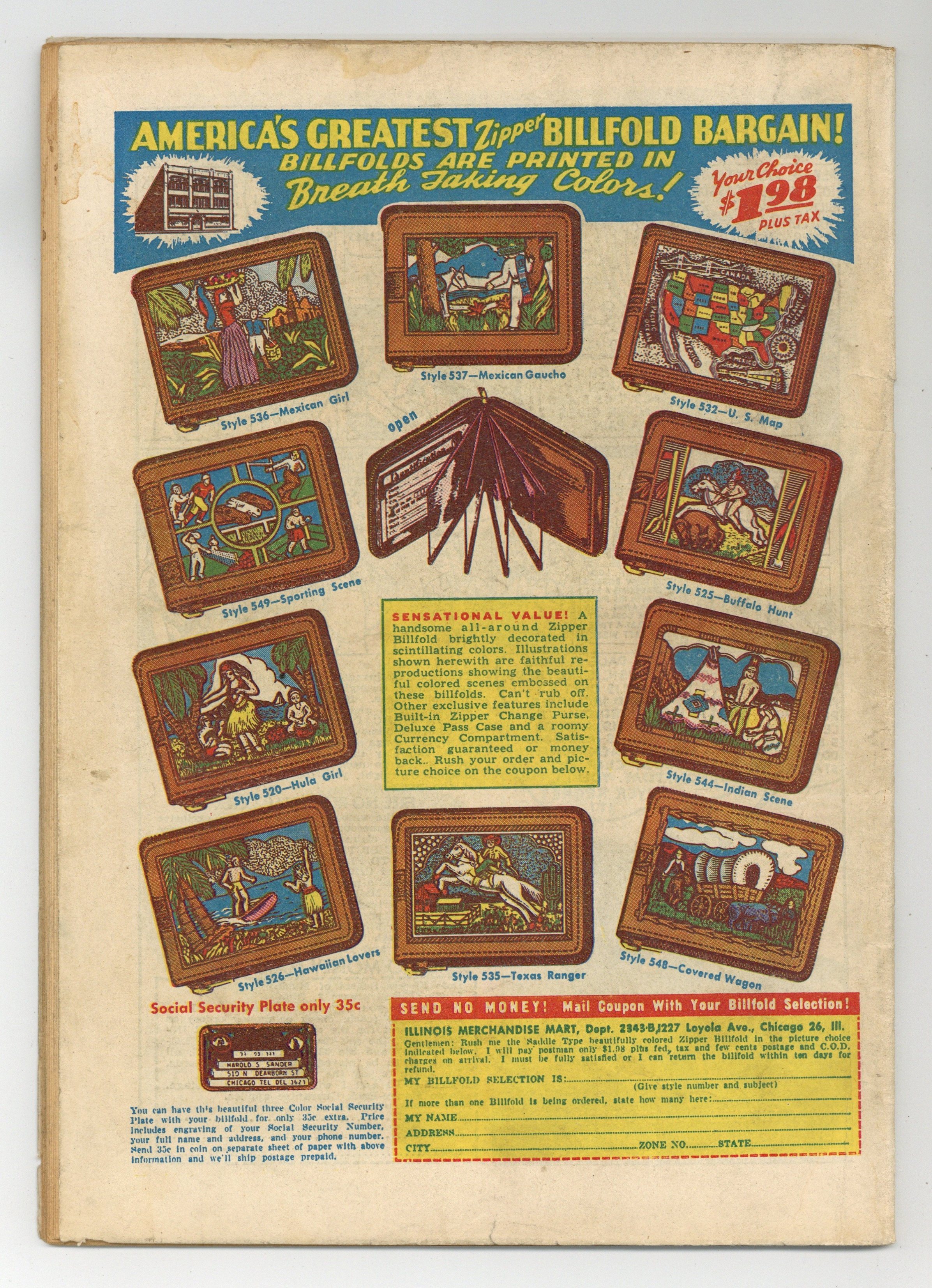 Cover by Jack Kirby and Joe Simon. Stories and art by A. C. Hollingsworth, Bill Draut, Joe Simon and Jack Kirby. Headline Comics featured the lurid, hard-edged crime dramas then in vogue, many by Captain America creators Joe Simon and Jack Kirby. Tillie is considered a witch in the Chicago slums where she correctly predicts deaths, but the truth may be more sinister. Bored, redheaded heiress Billie turns to a life of crime. Old West outlaw Jim Miller improvises one of the first bullet-proof vests. I Was An Unwitting Accomplice to a 'Numbers' Racket Combine!; The Witch Murders; Pistol-Packin' Playgirl; The Roasted Mail-Robber Ghost; Menace in the Making; Bullet-Proof Bad Man. 48 pages, Full Color. Cover price $0.10.
