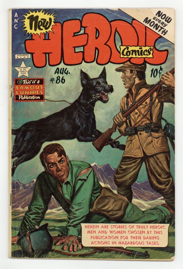 Stories and art by Frank Frazetta, John Belfi, Ben Thompson, Harold LeDoux, and Sam Glanzman. Non-fiction comics featuring true tales of heroism from everyday people and courage on the battlefield. Sgt. Lonnie Ashe receives the Bronze Star in Korea, featuring early art by fantasy and comics legend Frank Frazetta; A teen foolishly tries to imitate a stunt he saw in a movie; A girl awakens her family and saves them from a house fire. Only Doing His Job; One Man Army; Bloody Hook Ridge; His Duty Came First; Valiant Volunteer; Heroism on Hill 440; He Died Valiantly; Stuntman's Last Stunt; We Lost Everything But We Saved the Baby; Brooklyn's Great Hero; Staging a Holdup; Everything Burned But the Bible; Guts and Fortitude; Split Second Rescue. 32 pages, Full Color. Cover price $0.10.
