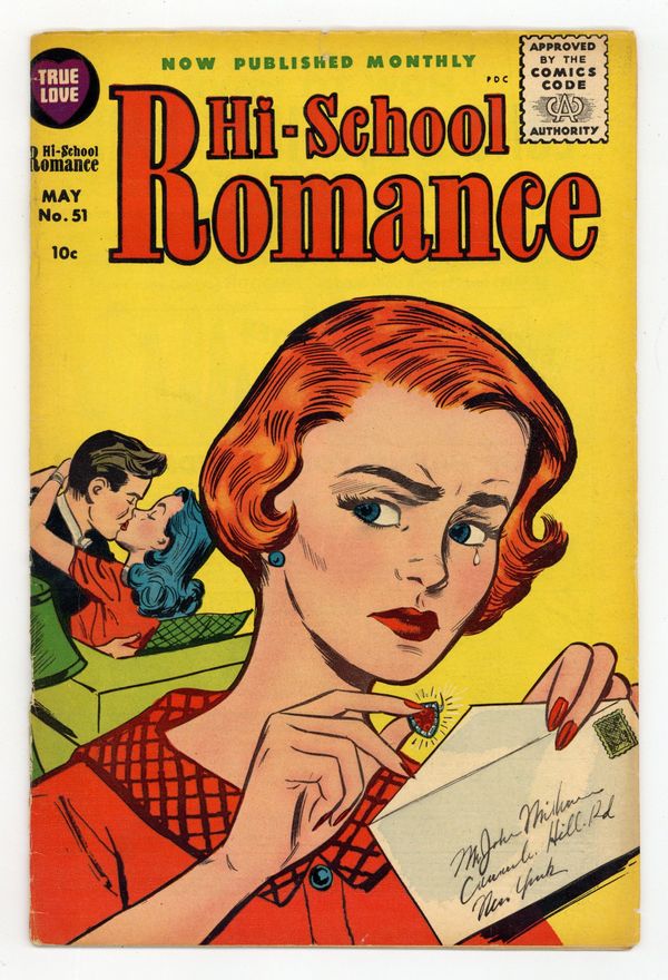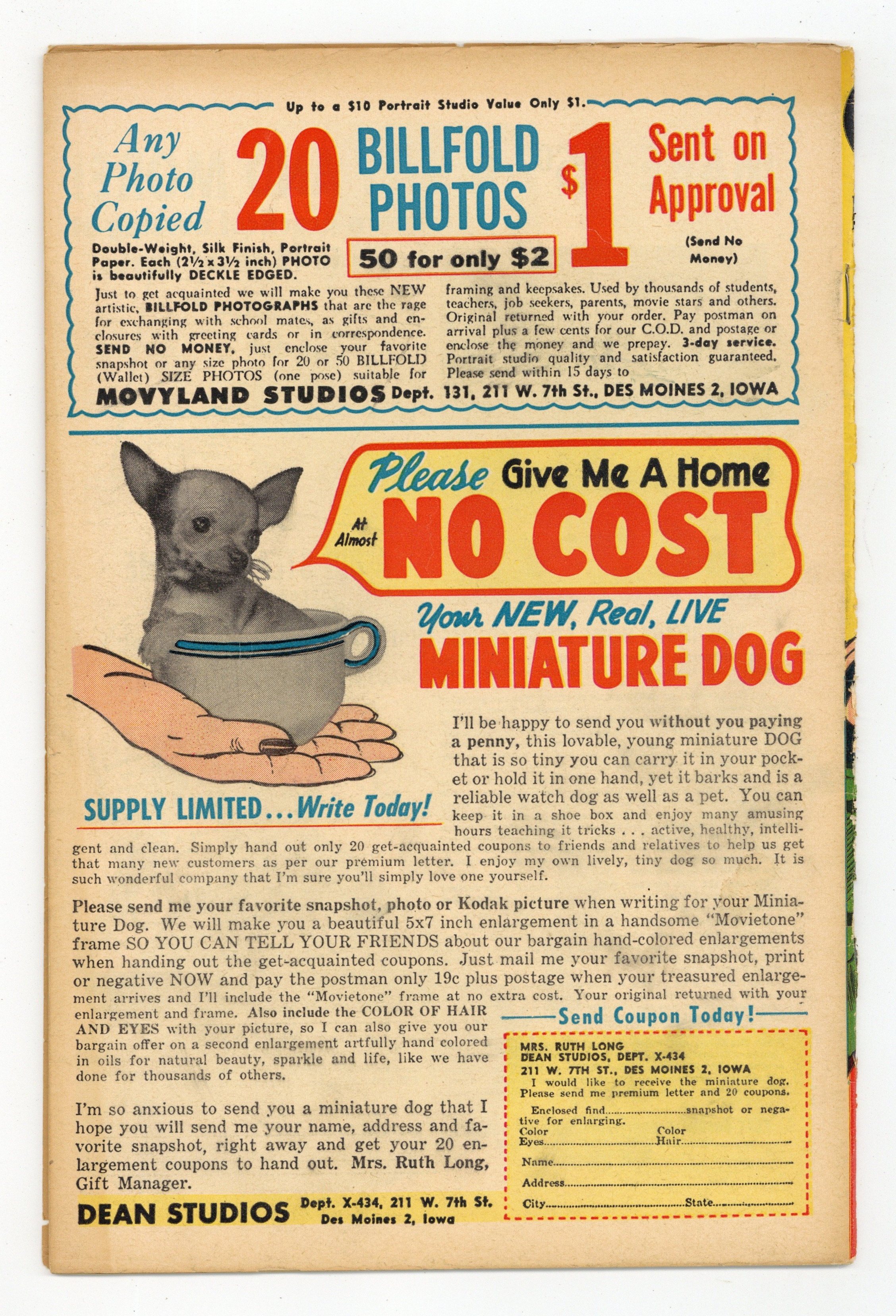 Cover by Al Avison. Stories and art by Bob Powell and others. A romance comic from Harvey, as the teens of the 1950s explore the new world of dating. Lois gets together with handsome campus jock Pete, but she's afraid he only sees her as a "petting partner." Ann falls hard for football star Rick, but she just can't seem to get his attention. Struggling art student Kit finds a job and love on a department store's marketing team. Second String Sweetheart; Just One More Kiss!; Hand-me-down Lover; Prelude to Tears; I'll Always Love You; For Pete's Sake! 32 pages, Full Color. Cover price $0.10.