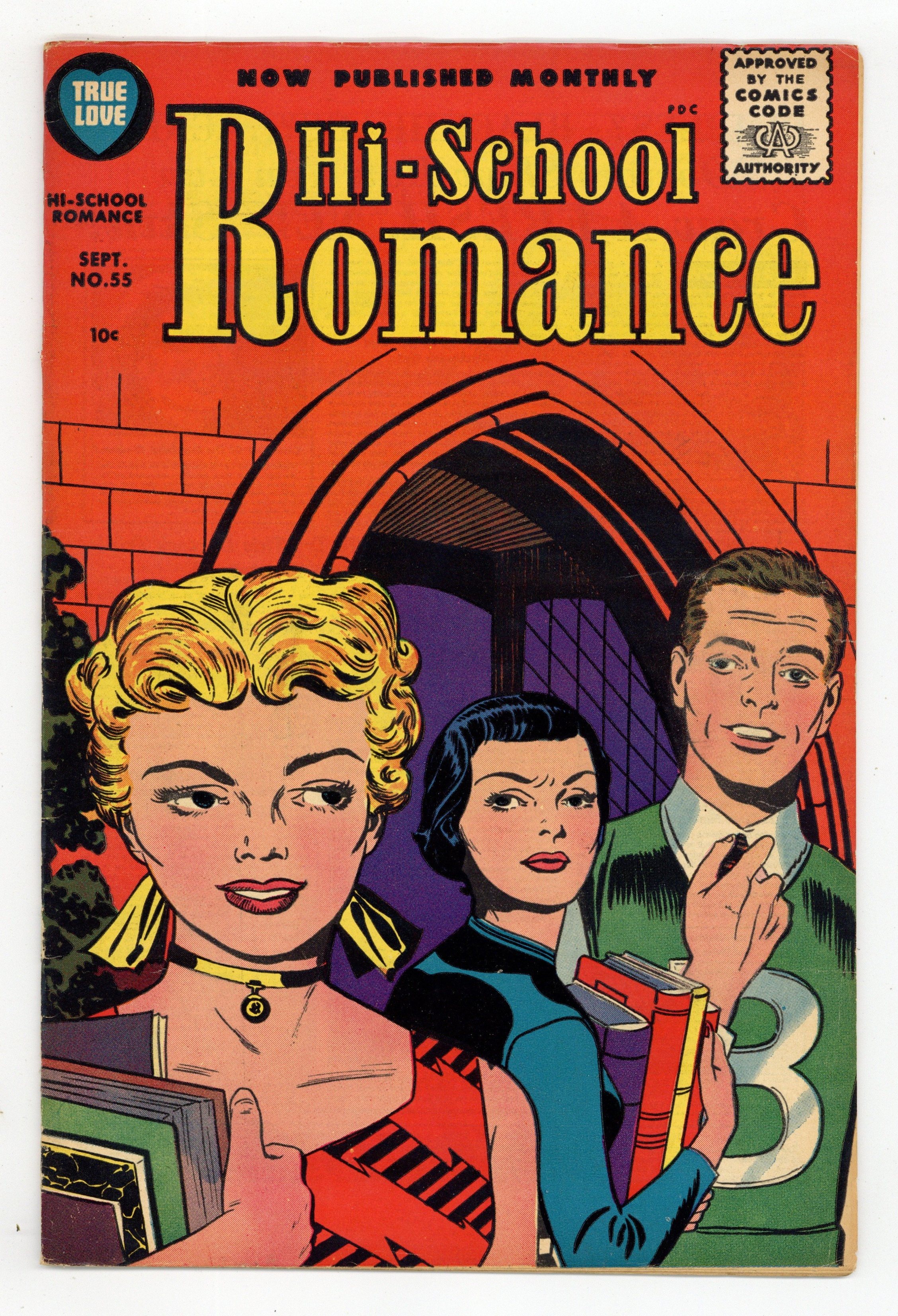 $39.00Cover by Jack Kirby. Stories and art by Jack Kirby and Bob Powell. A romance comic from Harvey, as the teens of the 1950s explore the new world of dating. Marcy's new classmates can't let her forget that she's the child of migrant workers, in a story that reveals the social structures of the post-WWII era. Lorna dances to forget being abandoned by her father and swears never to fall for any man, until she meets Larry. Teen Mary weds much older Emil to escape her abusive family, but then she meets handsome Don, who is her own age. Plus a quiz about popularity (that's really about good behavior). This issue's reprinted stories include at least one new panel by comics legend Jack Kirby (p. 4, panel 3), probably to make the story compliant with the new Comics Code. Plus a cover by Kirby, the king of the romance comics at the time. Scandalous; The Typical Bachelor; Popularity Quiz; I Dared to Hope; Rendezvous with Youth; Nothing Like A College Man; Return to Heartbreak. 32 pages, Full Color. Cover price $0.10.
