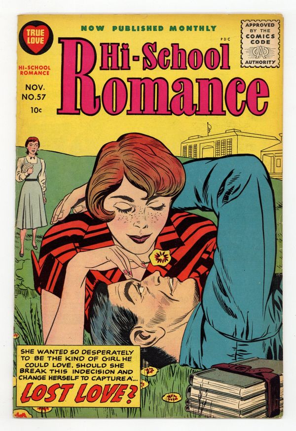 Stories and art by John Prentice, Warren Kremer, Ray Bailey and Bob Powell. A romance comic from Harvey, as the teens of the 1950s explore the new world of dating. In the world of 1950s hot-rod racing, a volatile love triangle develops between Vic, May and Hank. Patti gets a factory job and begins a romance with plant foreman Larry, but he doesn't realize she's still in high school. Helen masquerades as her cousin to play tennis at a country club, but soon falls for tennis pro Tom. Plus a cover that may be the work of comics legends Jack Kirby and Joe Simon. Love Me Tonight; Perfect Love; Sewing Strategy!; Without Regrets; Kid Stuff!; My Lonely Heart; Stolen Dream. 32 pages, Full Color. Cover price $0.10.